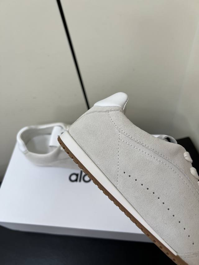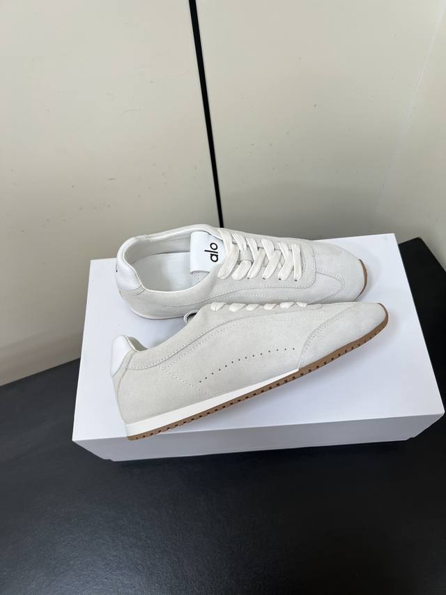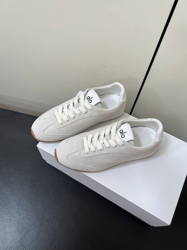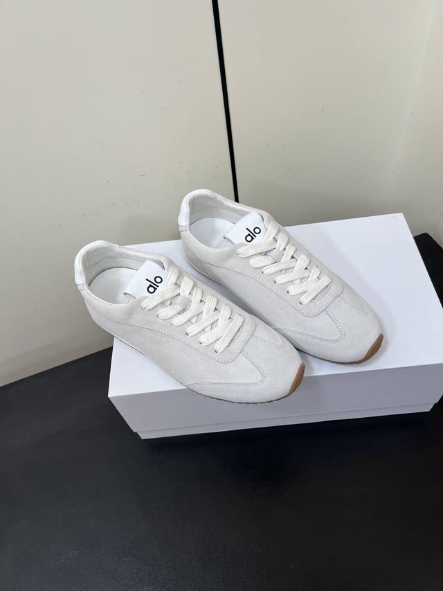 Alo比耐克更懂女生!上脚超级百搭!而且超级舒适!是薄底款上脚一点都不沉重!非常轻便!套上袜套搭配更好看!而且还是明星同款推荐~上脚超级显腿细!超级适合我们小个子女生~鞋子整体也是经典的牛反绒设计搭配鞋面细腻的纹路肌理感!!