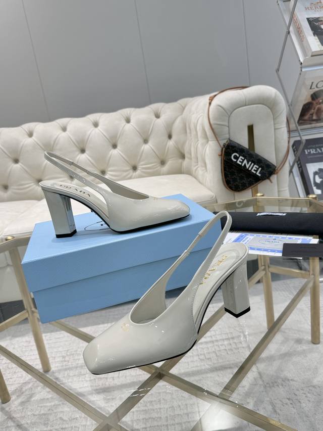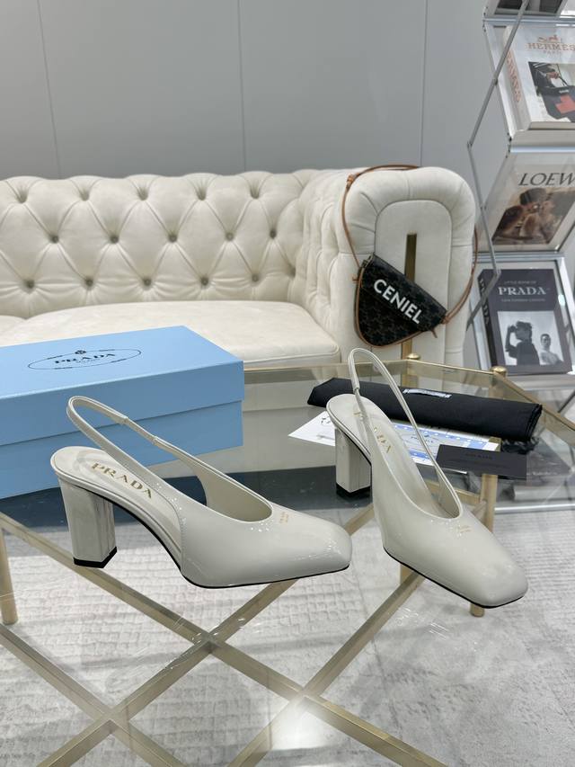 上新 现货 拆原板1:1复刻 最高版本 2025Prada 早春走秀t台爆款 最新春款 粗跟小方头系列 出厂价 真皮大底 仿真皮底 女神必备 上脚超级美 鞋面和垫脚釆用最新3 D Logo 元素立体 高级进口原版牛柒皮 柔软有质感 内里+垫脚 进口羊皮里 透气又舒适 对版私模鞋跟 跟高8M 码数35M-39M 34 40 414243订做不退不换