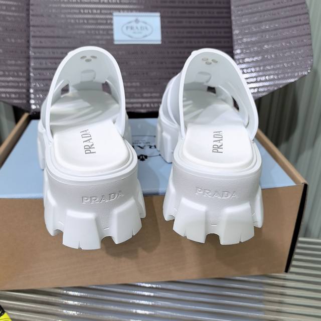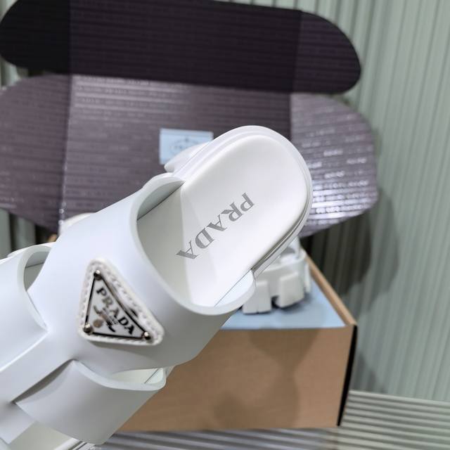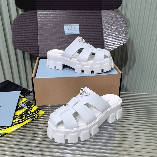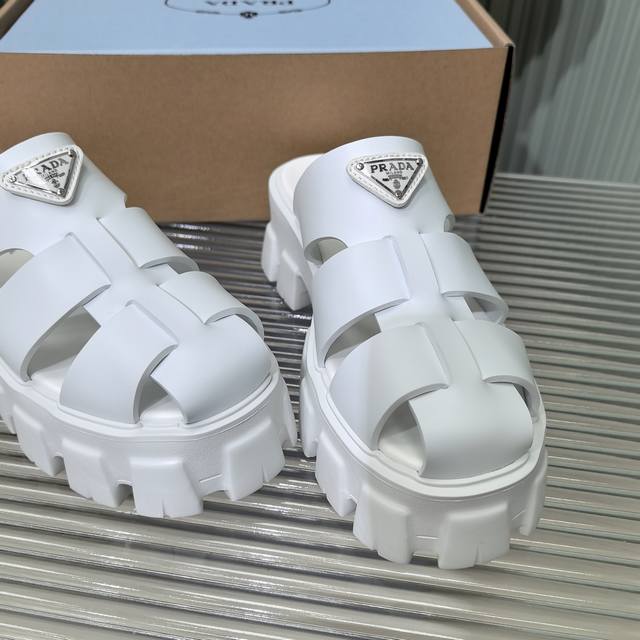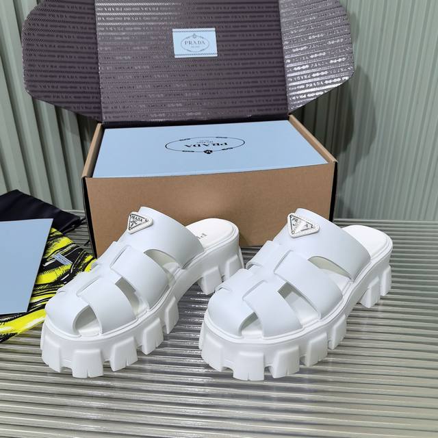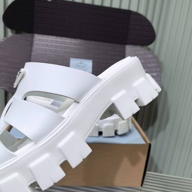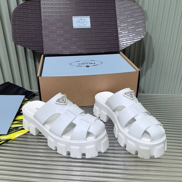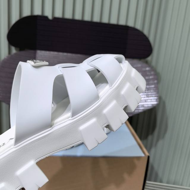 东莞代购级+prada普拉达 25春夏新款锯齿罗马编织厚底橡胶凉拖鞋