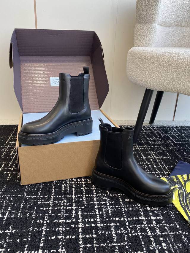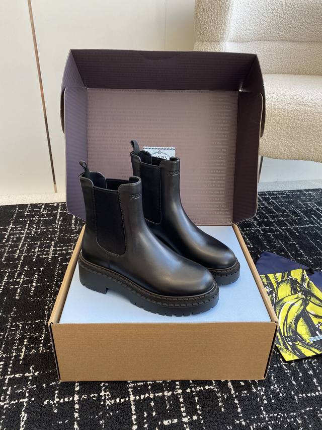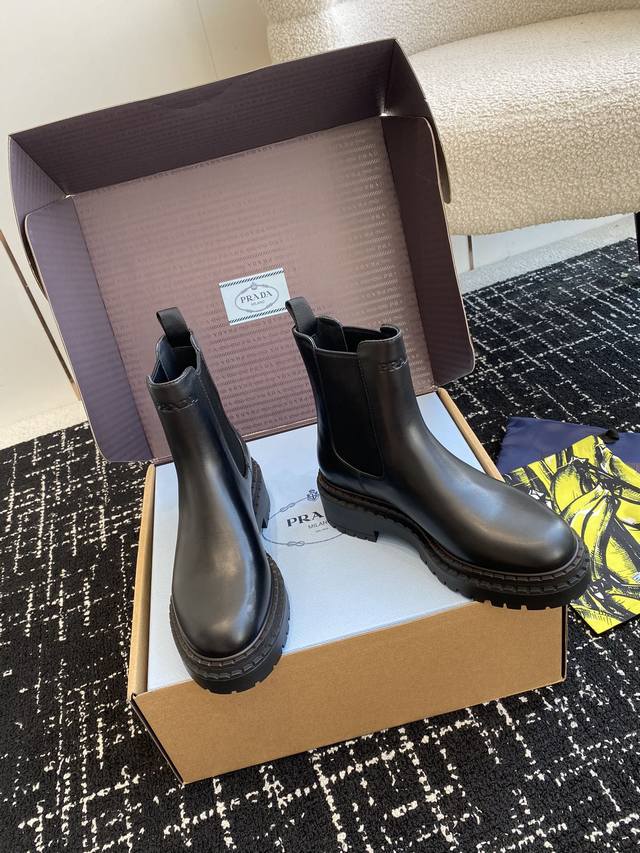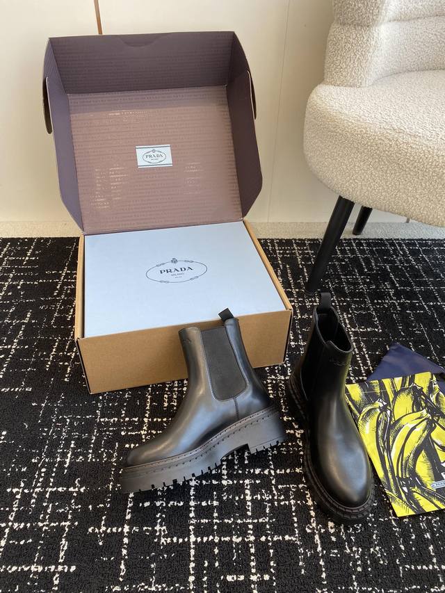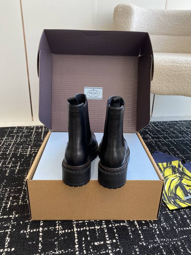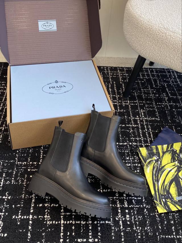 东莞代购级 官网同步飞机盒包装 Prada普拉达 24Ss 秋冬 厚底复古马丁靴 时尚厚底休闲机车马丁靴,独到味道,人人都爱也轻松驾驭 每年都会爆.还有就是百搭