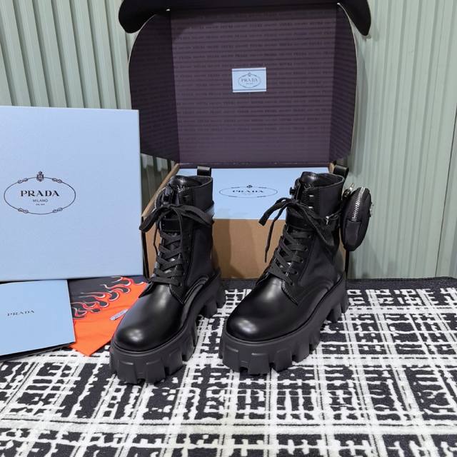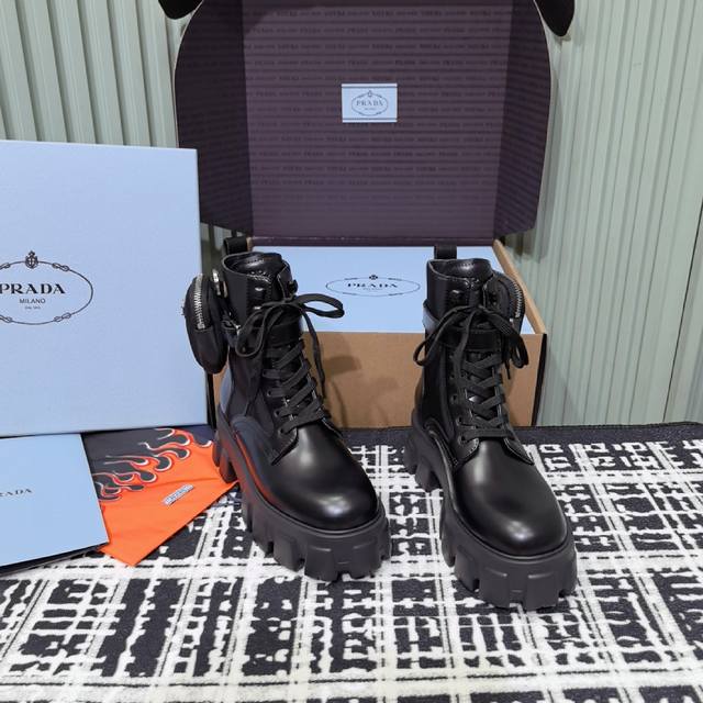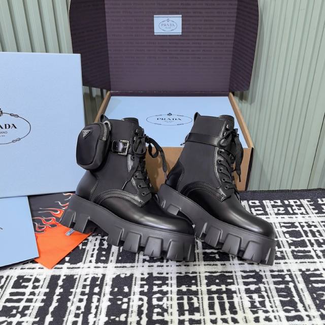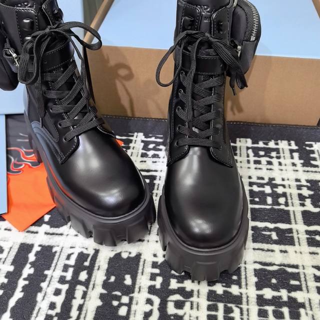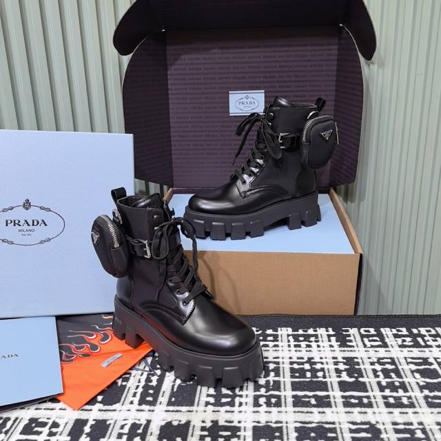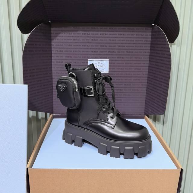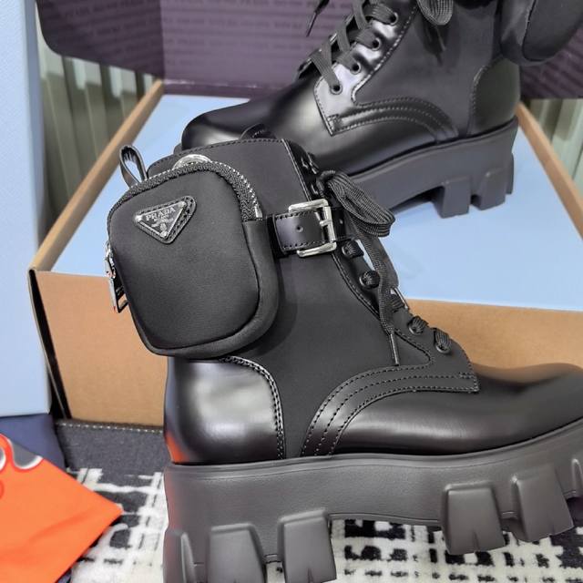 普拉达 全网最热的卖包包靴就在这里啦!常青款不过时配上袜子真的万能穿搭方式,可正式可休闲,文艺时髦又复古!上脚显腿长,必入款。 走秀款!明星网红同款pr*A高端定制!原版1:1开模材质:进口哑光开边珠配防水尼龙面料,内里全牛皮