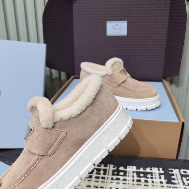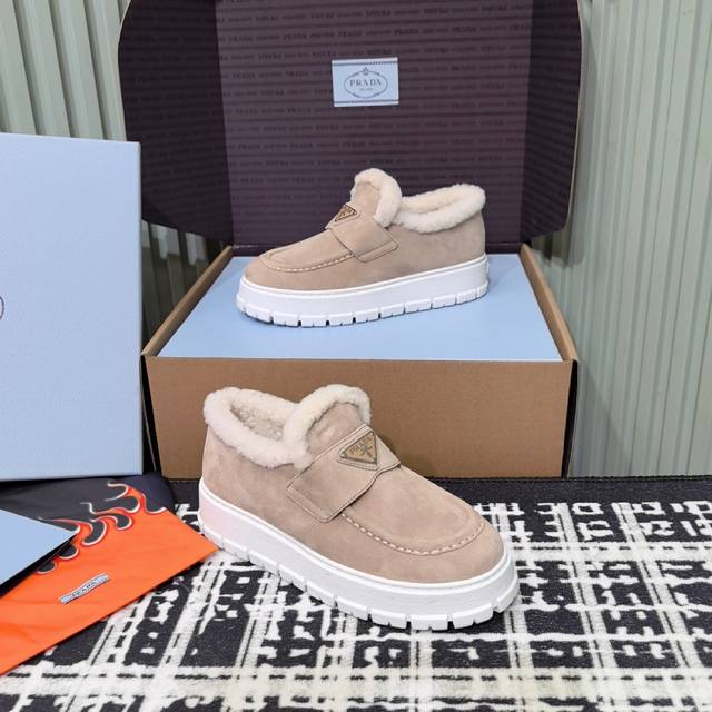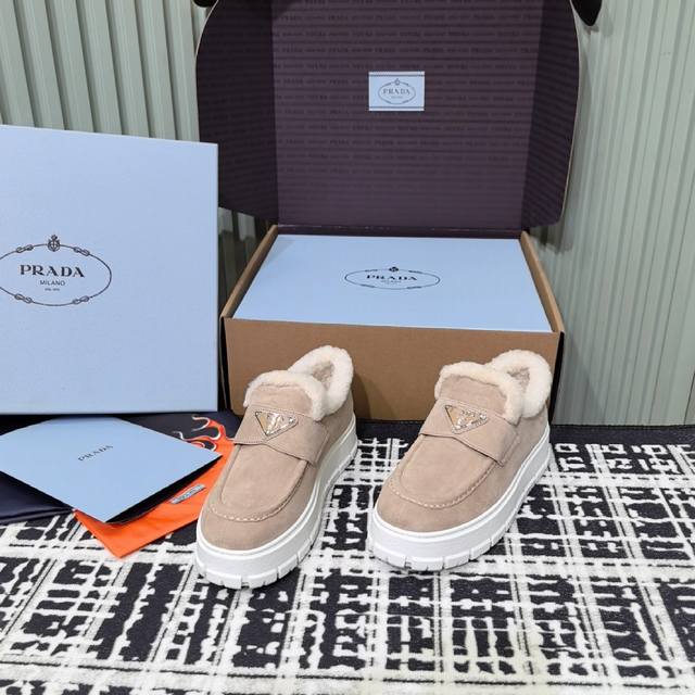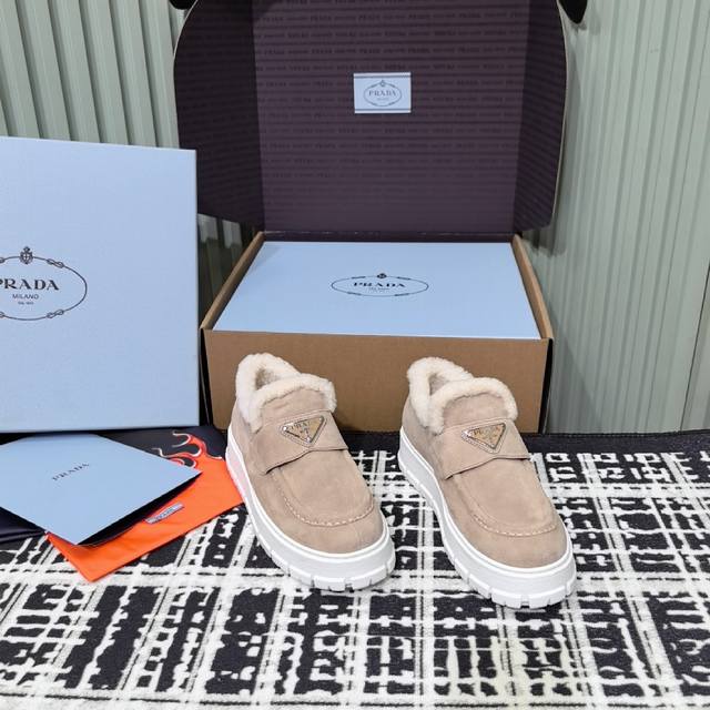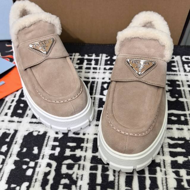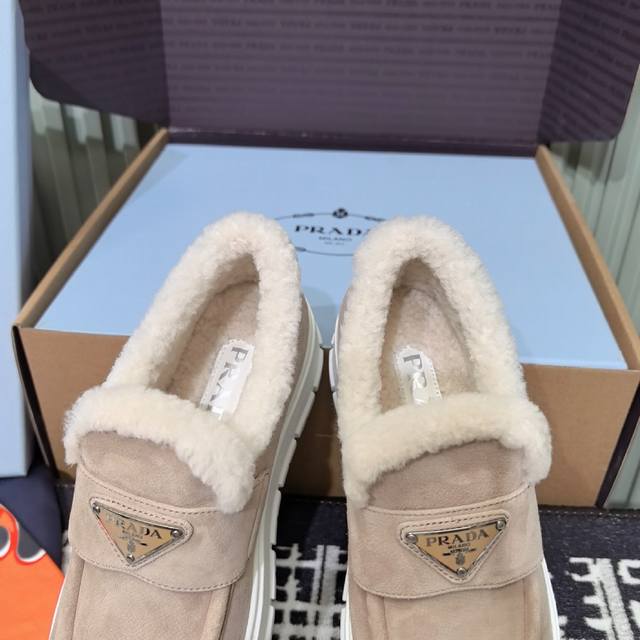 prada普拉达 24Ss 厚底 羊毛休闲 乐福鞋 这款运动鞋延续经久不衰的轮廓,是新款经典单品