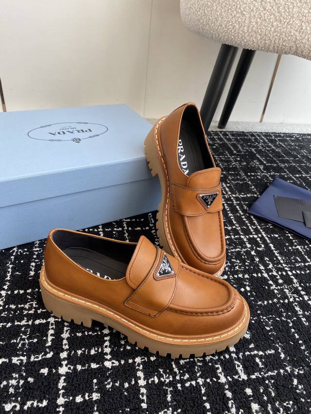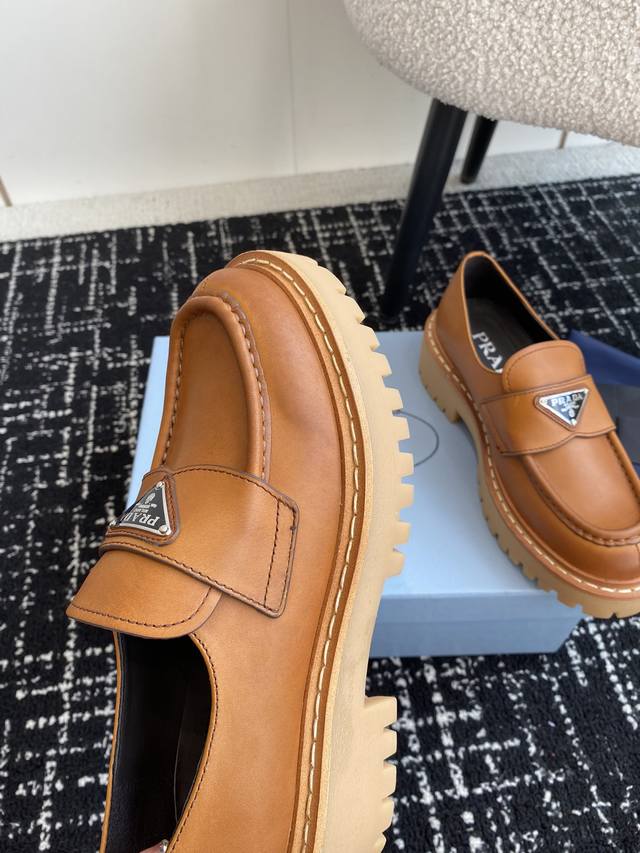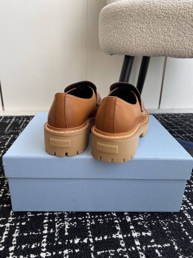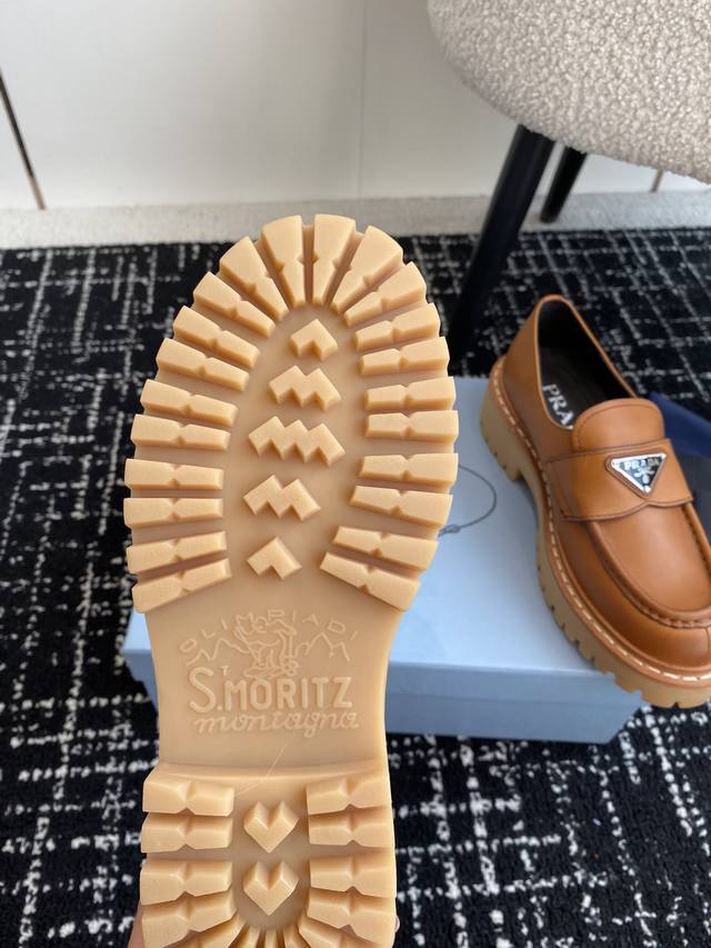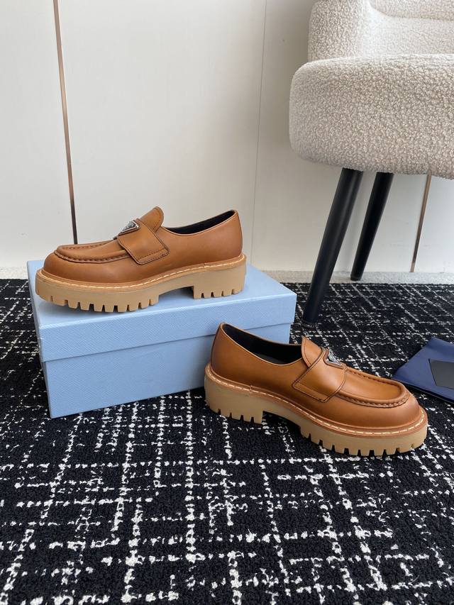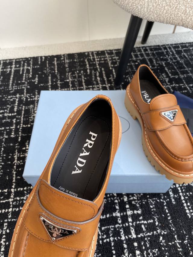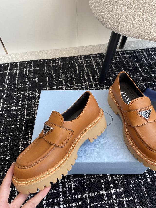 Prada普拉达 24Ss 秋冬 厚底三角标乐福鞋 短靴