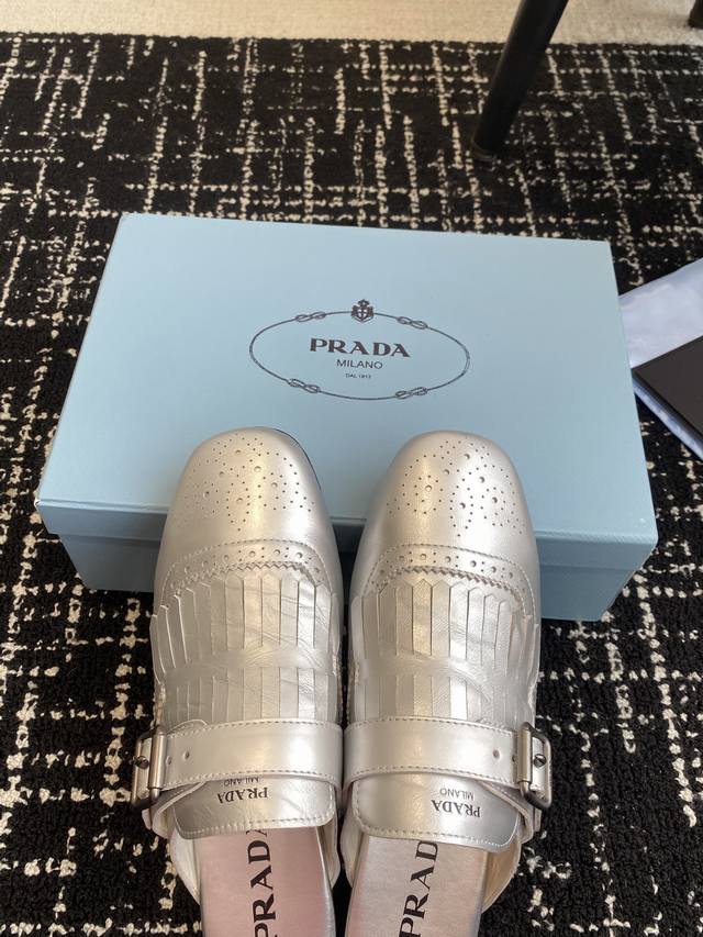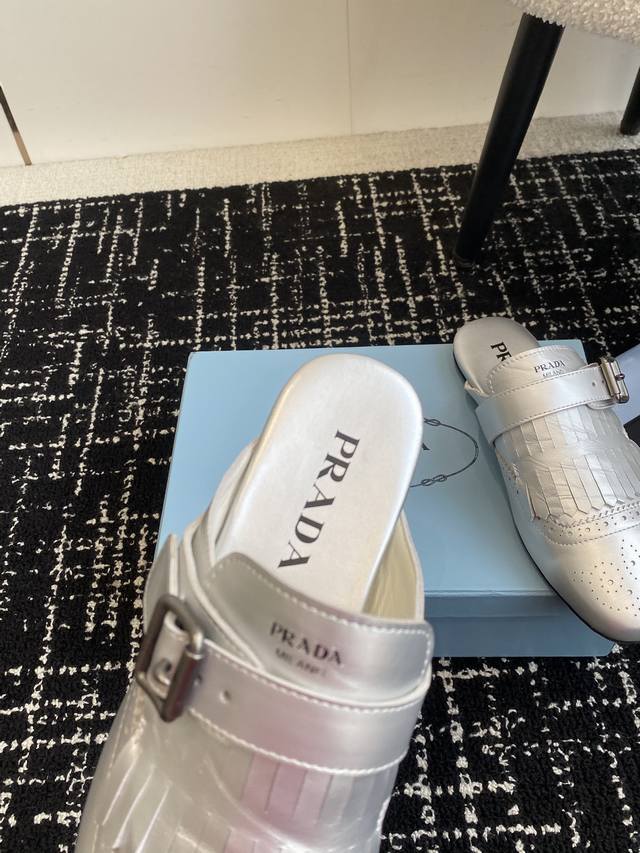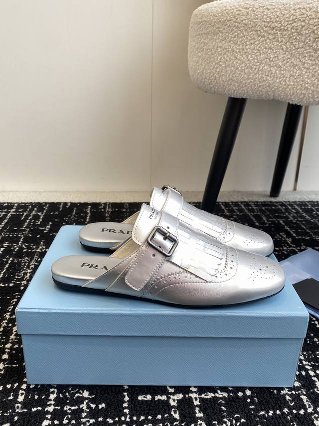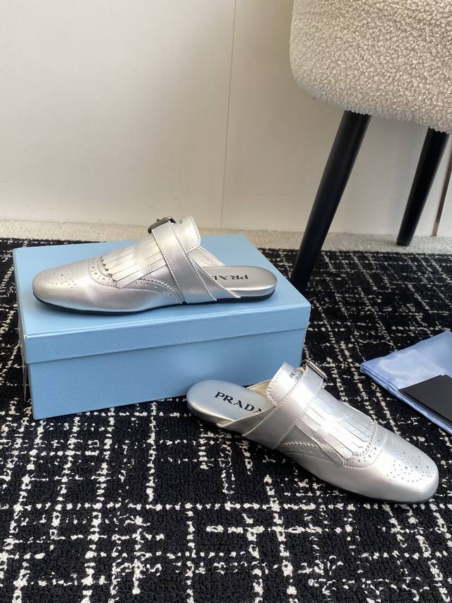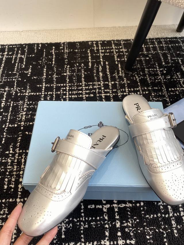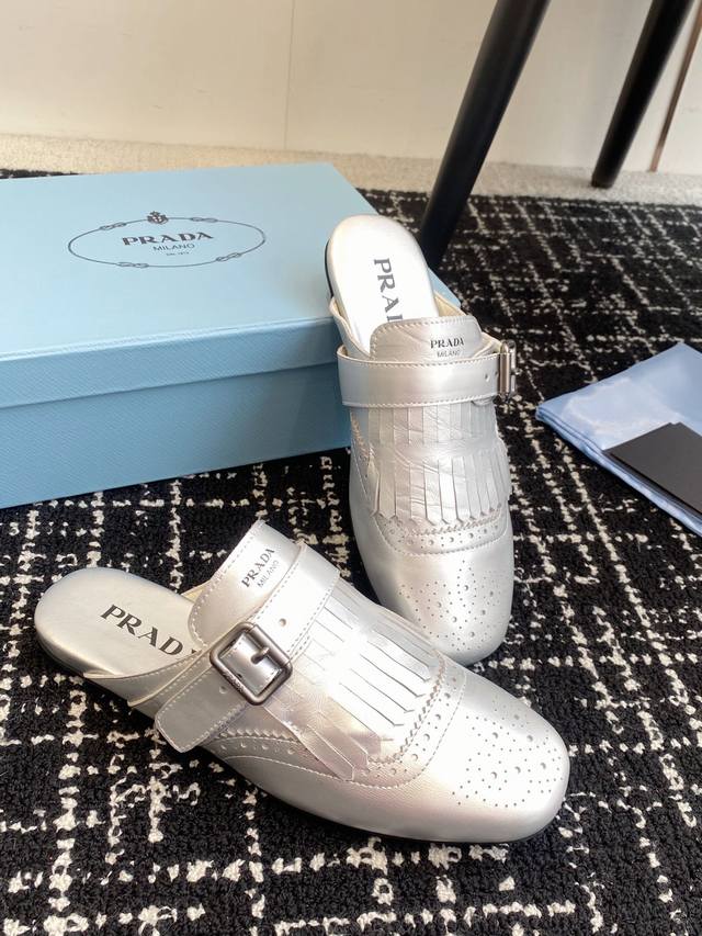 Prada 25Ss 普拉达走秀款复古流苏半拖鞋单鞋爆款!