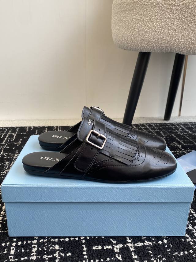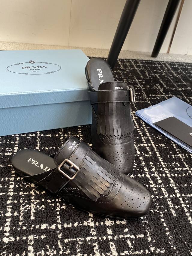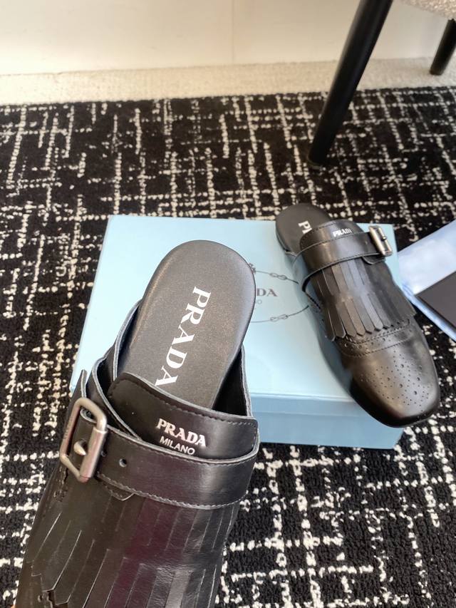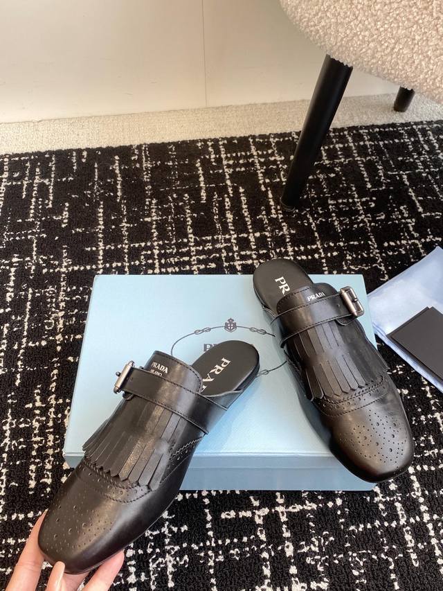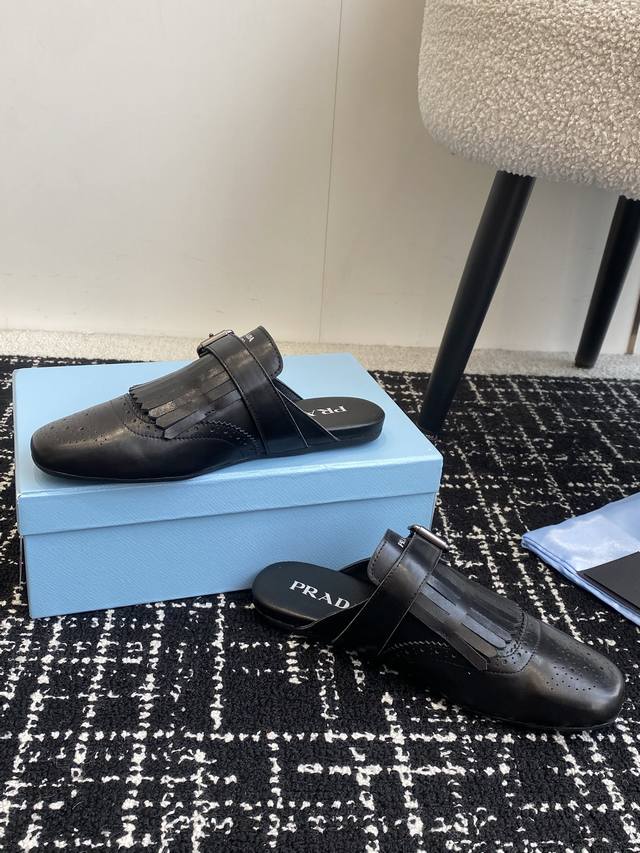 Prada 25Ss 普拉达走秀款复古流苏半拖鞋单鞋爆款!