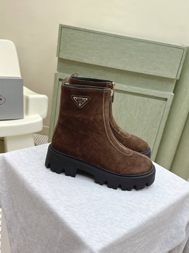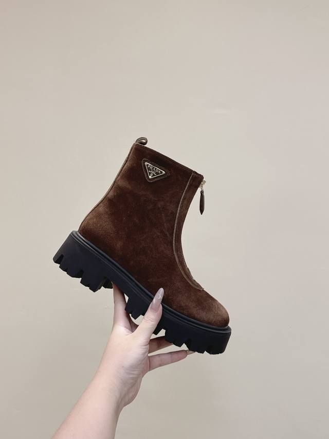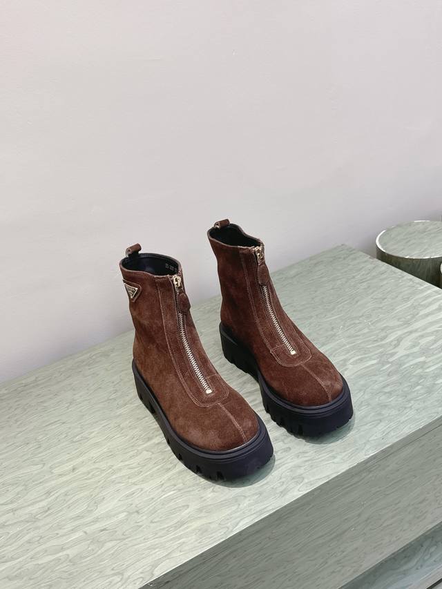 代购级 |D0105prada 25Ss普拉达经典三角标前拉链王炸女靴