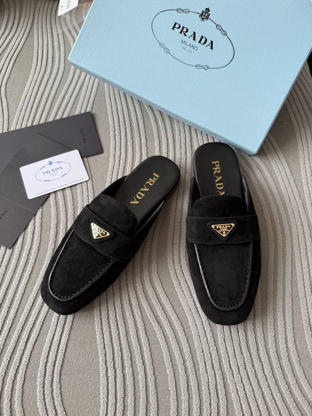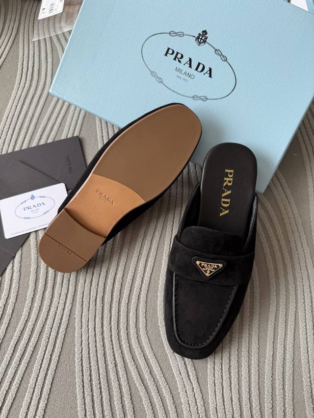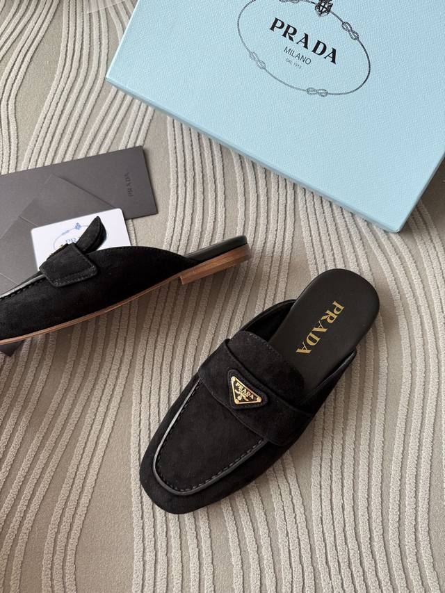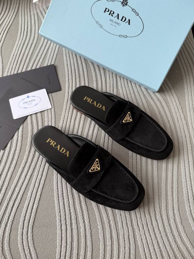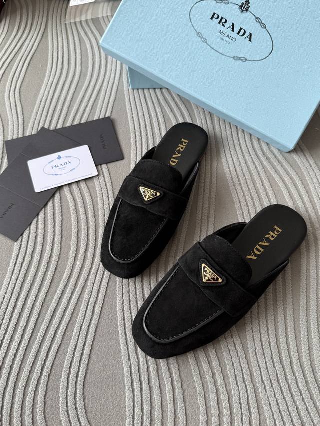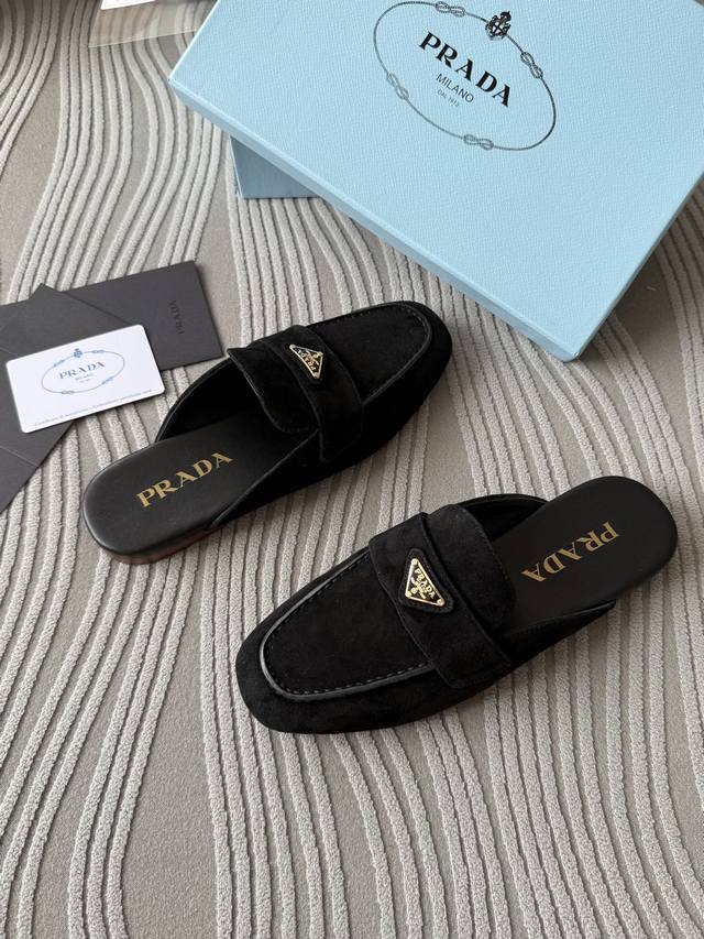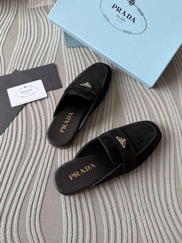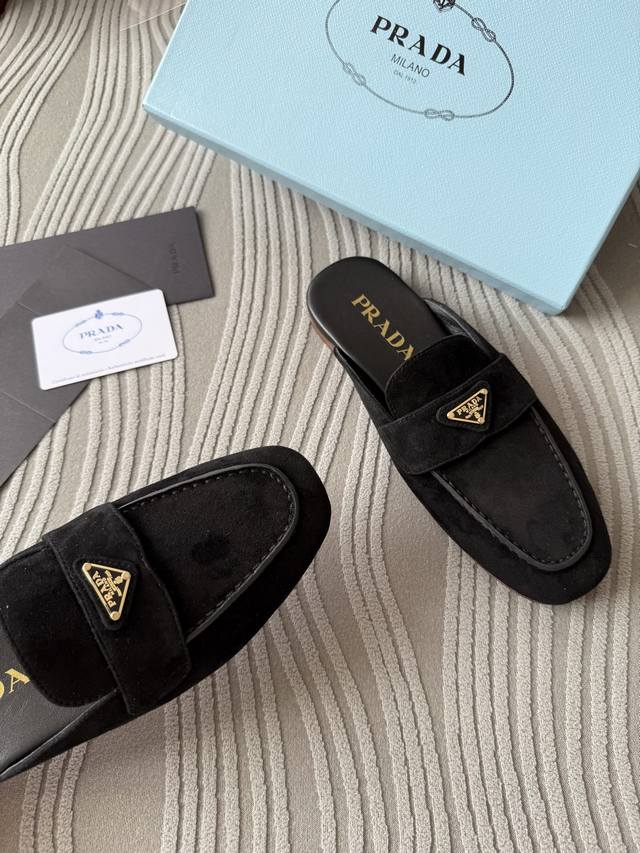 prada 25Ss 普拉达走秀款三角标 半拖鞋爆款!