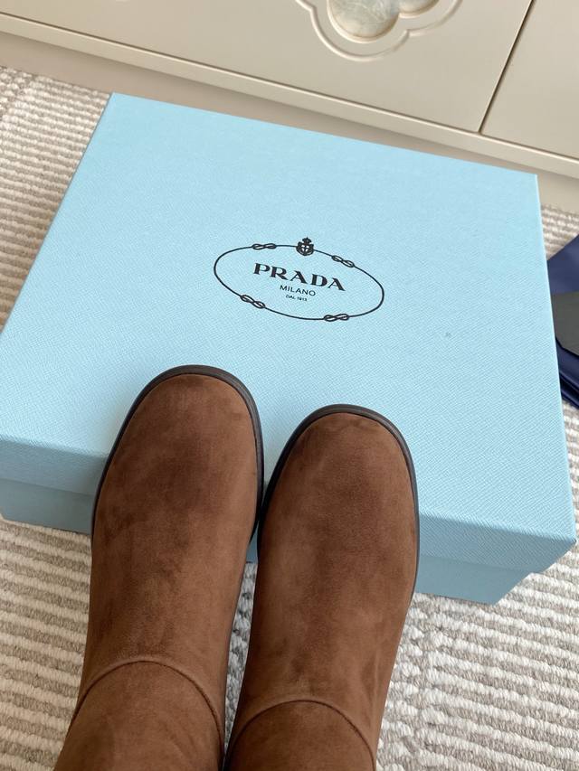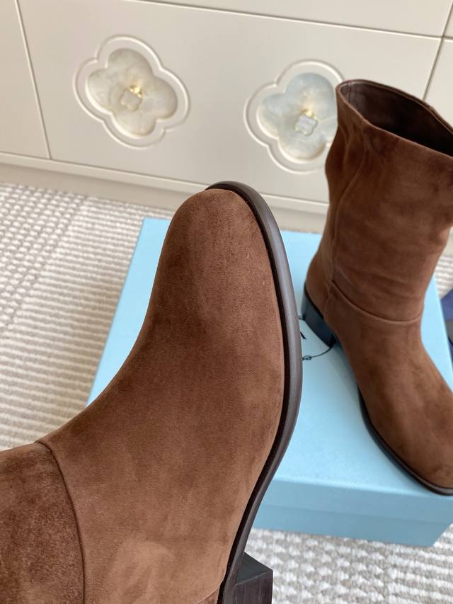代购级prad* 普拉达 25Ss 秋冬 新款麂皮短靴