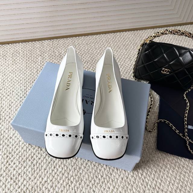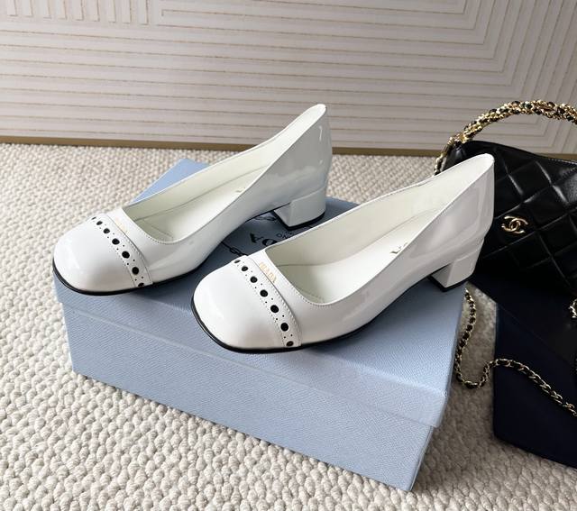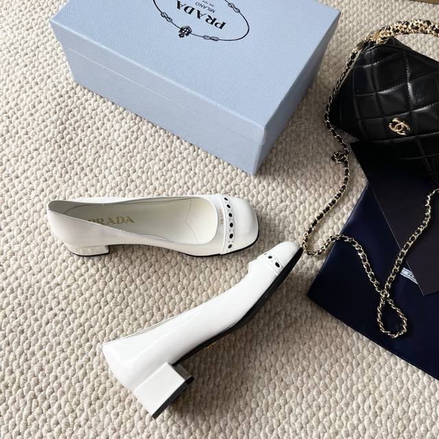 低跟 高跟 代购版 Prada普拉达25年新款 方头粗跟玛丽珍单鞋 复古摩登元素,大方不失气质 牛皮面,牛皮内里,真皮底 跟高:4Cm 正码:35-41