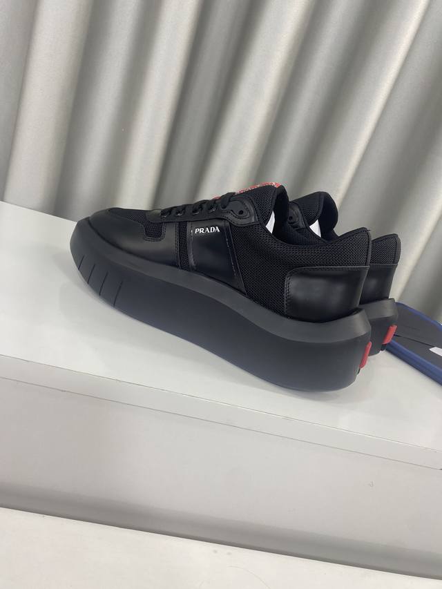 P家此款 鞋底鞋身参考跑车设计 整体造型充满科技感 这不紧是一双休闲鞋 更是文化与艺术的结合体 上脚增高休闲两不失误 清爽的表现足以表达对鞋子个个细节的把控 走在潮流顶端的面包风 搭配超轻发泡厚底 再加上普拉达的三角经典标识log,深受各大名人垂青,时尚百搭闭眼入