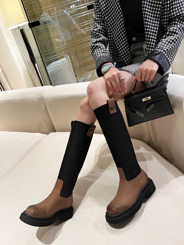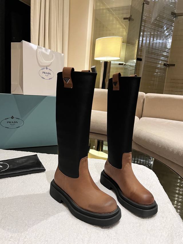 冲量价: Prada普拉达经典三角标一脚蹬王炸女靴 冬天买不到的系列,绝对是今年的大爆款!!贼好看!Prada靴子真的很哇塞!上脚大气显腿瘦气质这块刚好拿捏,全