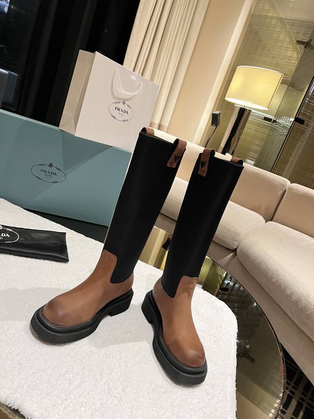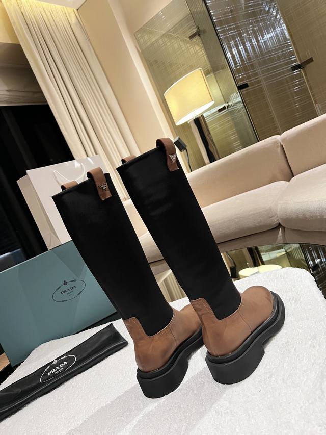 冲量价: Prada普拉达经典三角标一脚蹬王炸女靴 冬天买不到的系列,绝对是今年的大爆款!!贼好看!Prada靴子真的很哇塞!上脚大气显腿瘦气质这块刚好拿捏,全系列采用多种进口材料:擦色打腊小牛皮,开边珠牛皮,牛反绒高丝光,内里水染羊皮!!发泡底轻便舒适!35-41