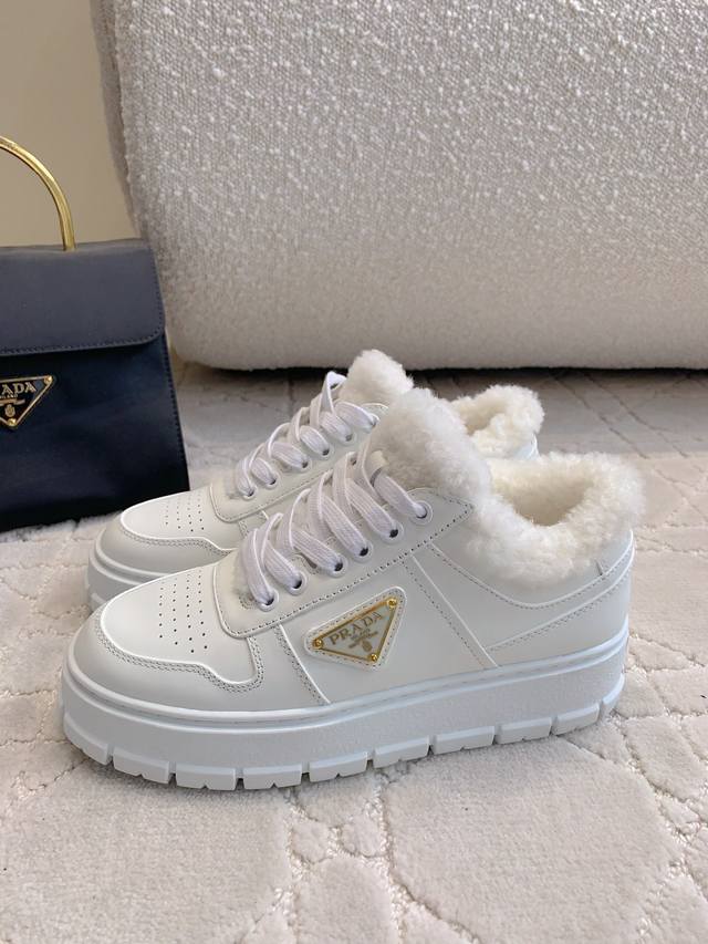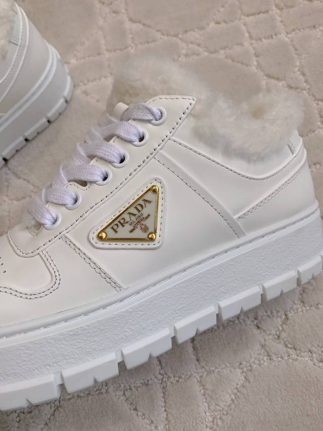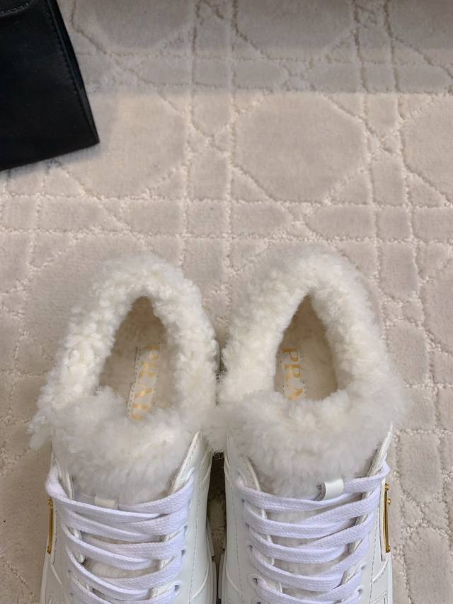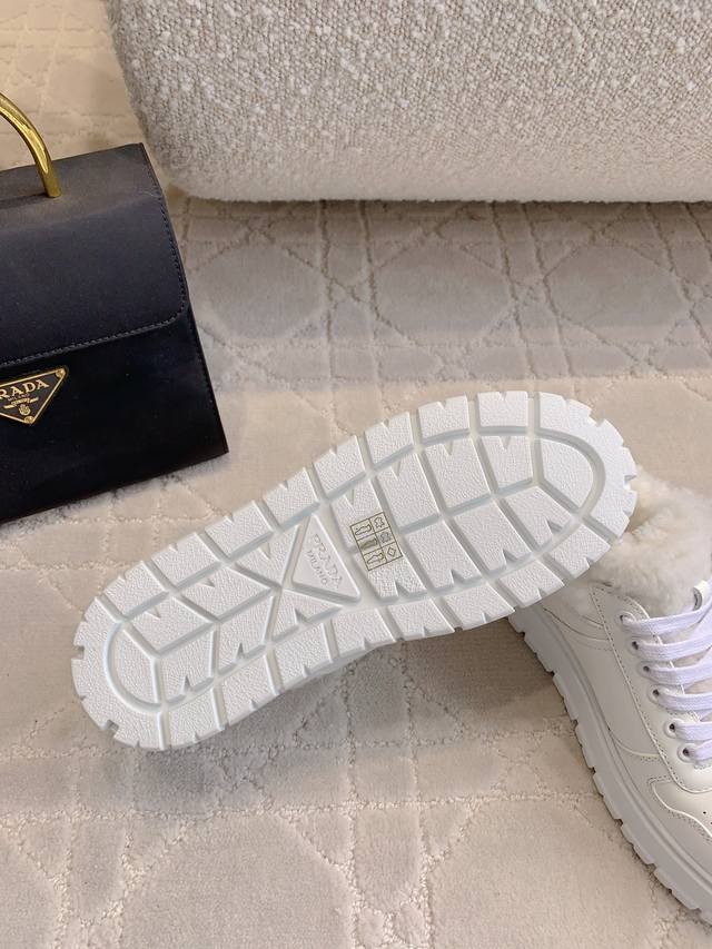 / 出厂价 顶级版本 Prad*最新款三角标休闲板鞋 羊毛款舒适保暖 原版购入打造 1:1细节复刻 顶级版本! 鞋面牛皮 内里垫脚进口澳洲羊毛 原版开模大底 尺码3