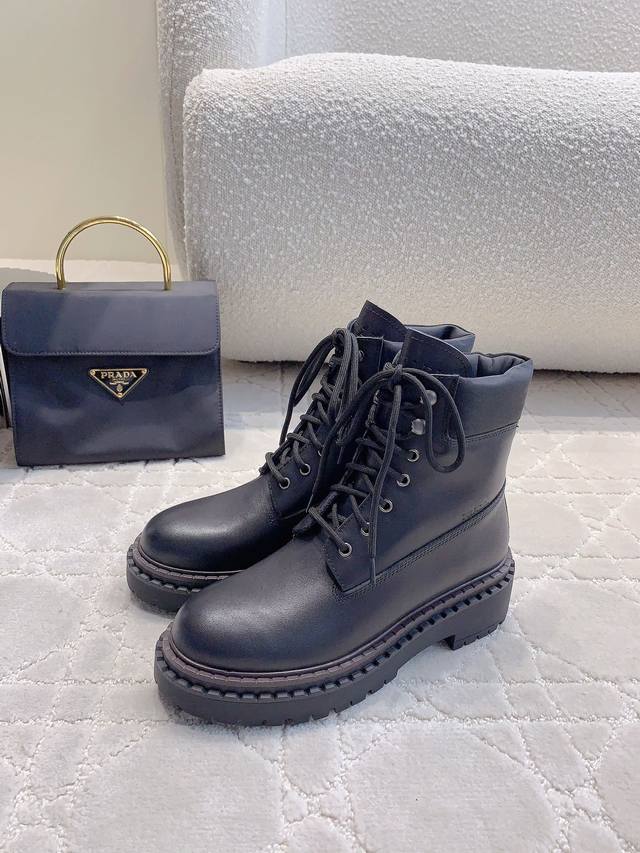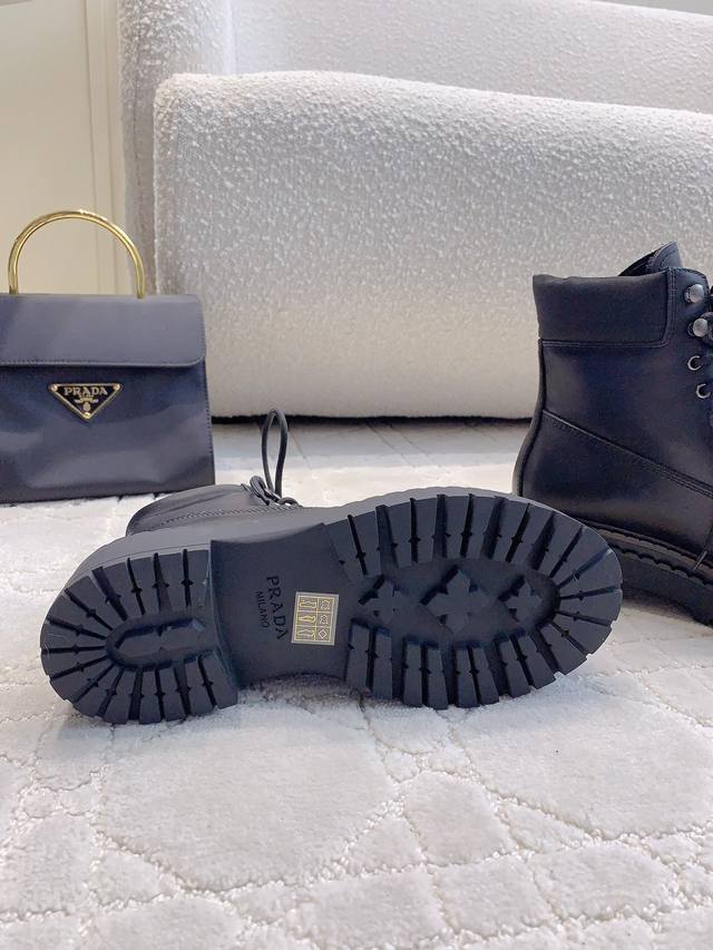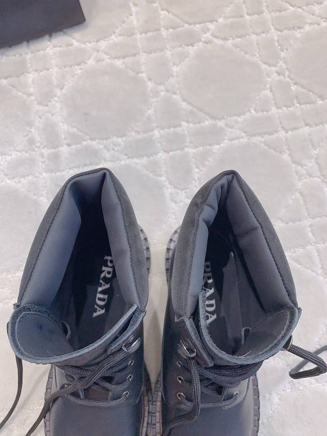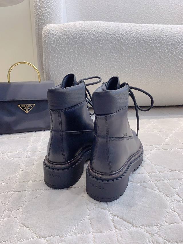 Prad*新款厚底马丁短靴 挺拔有型 上脚有帅又飒 经典压纹logo 低调又不失精致 鞋底有一定厚度 超显腿长