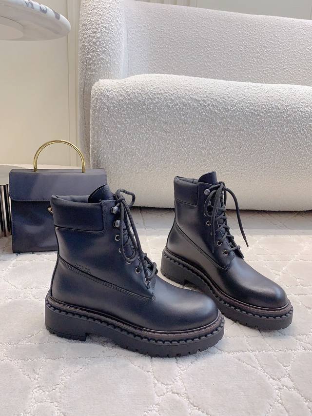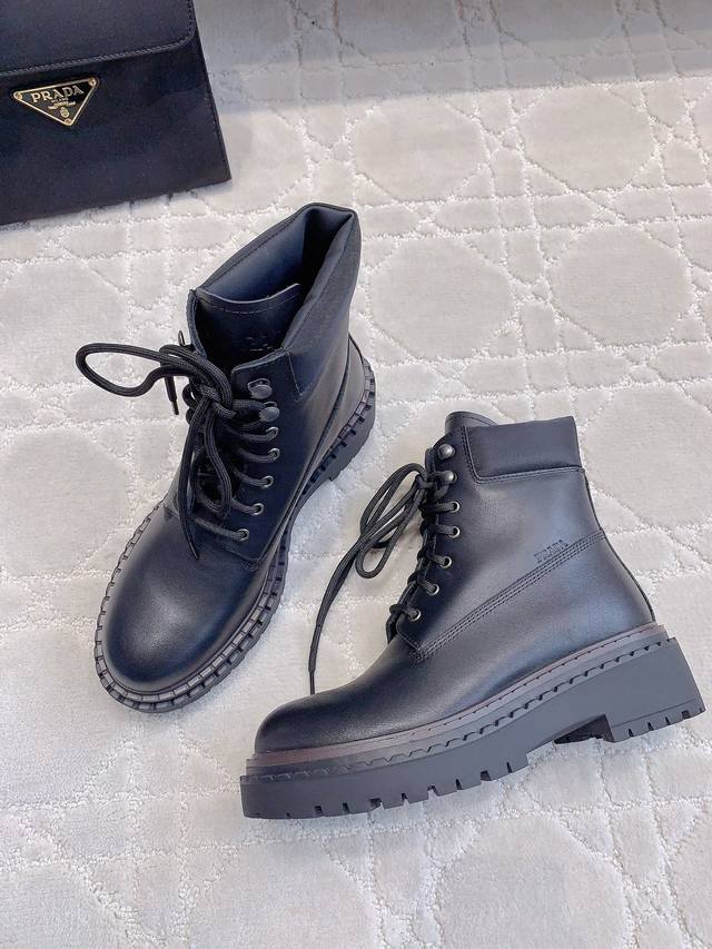 / 出厂价 Prad*新款厚底马丁短靴 挺拔有型 上脚有帅又飒 经典压纹logo 低调又不失精致 鞋底有一定厚度 超显腿长 鞋面原版小牛皮 内里垫脚牛皮 原版开模大