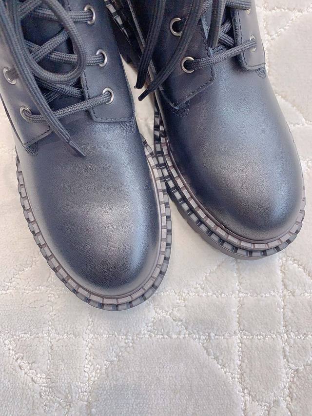 出厂价 Prad*新款厚底马丁短靴 挺拔有型 上脚有帅又飒 经典压纹logo 低调又不失精致 鞋底有一定厚度 超显腿长 鞋面原版小牛皮 内里垫脚牛皮 原版开模大
