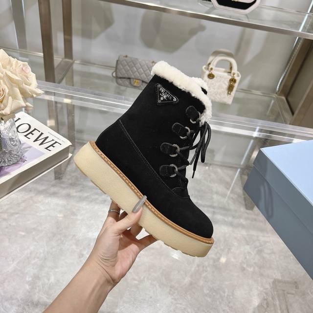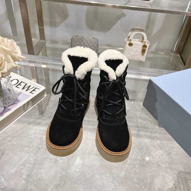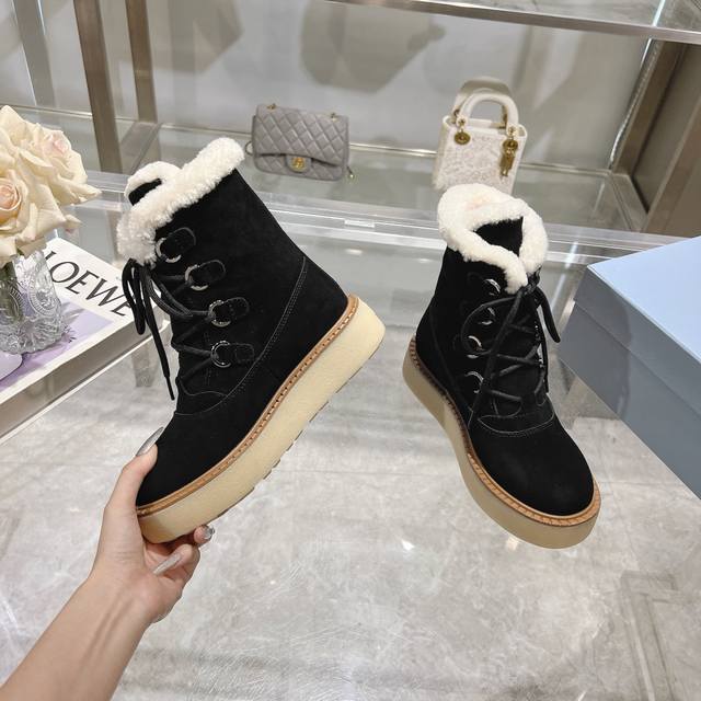 网红爆款,官网同步最新款,原版1:1复刻顶级品质!100%纯羊毛内里蓬松密卷,质感直接拉满,底高6.5Cm,增高显腿长的同时又保暖,时尚百搭,冬季穿搭必备单品
