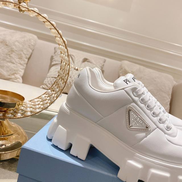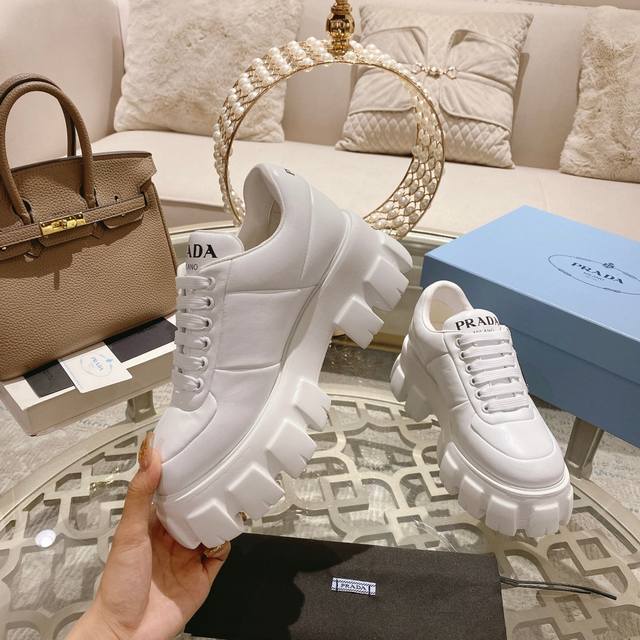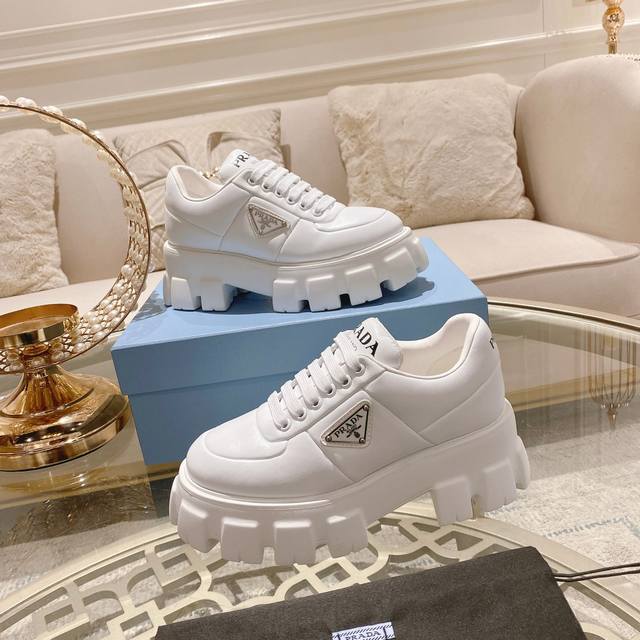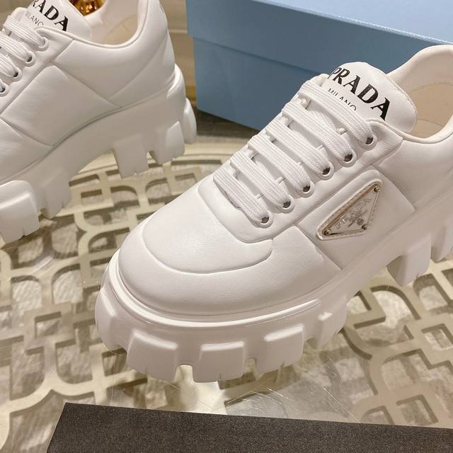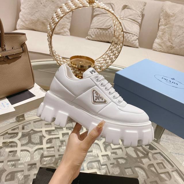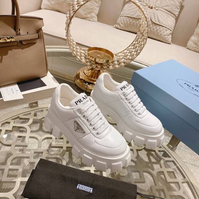 高品质出厂 !顶级品质prada 普拉达 24Ss秋冬三角标厚底球鞋帆布鞋休闲鞋! 科技帆布最新黑科技...