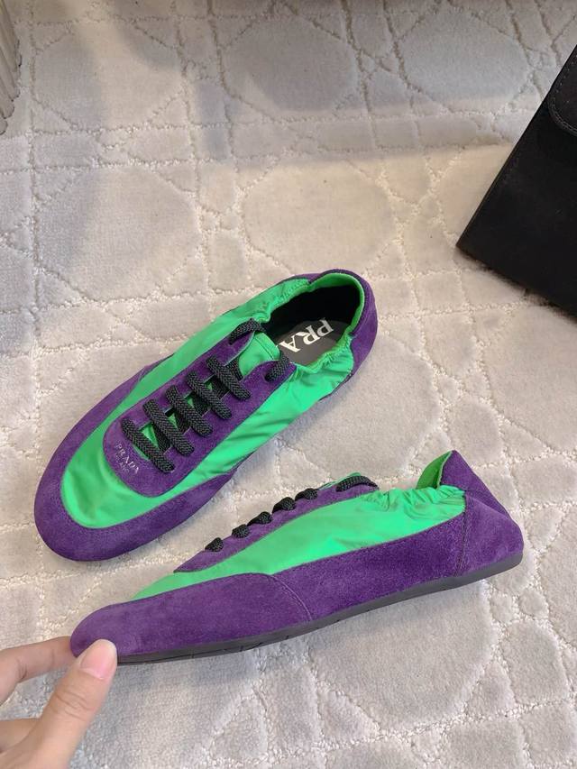 / 出厂价Prad*新款懒人鞋德训鞋休闲鞋 配色非常高级 上脚太好看啦 闭眼入 各种穿搭都能驾驭 百搭又舒适鞋面原版布面拼接牛反绒 内里垫脚羊皮 原版开模大底 尺码