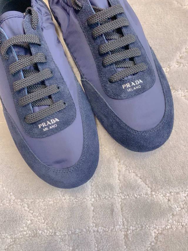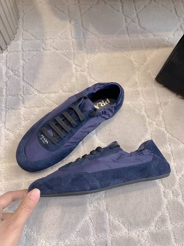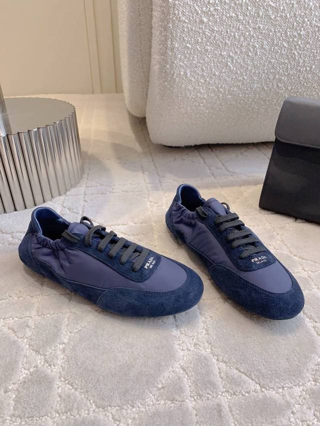 出厂价Prad*新款懒人鞋德训鞋休闲鞋 配色非常高级 上脚太好看啦 闭眼入 各种穿搭都能驾驭 百搭又舒适鞋面原版布面拼接牛反绒 内里垫脚羊皮 原版开模大底 尺码