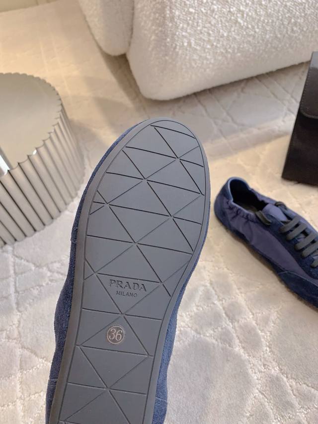 / 出厂价Prad*新款懒人鞋德训鞋休闲鞋 配色非常高级 上脚太好看啦 闭眼入 各种穿搭都能驾驭 百搭又舒适鞋面原版布面拼接牛反绒 内里垫脚羊皮 原版开模大底 尺码