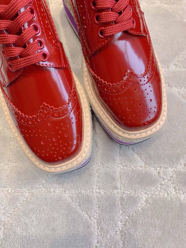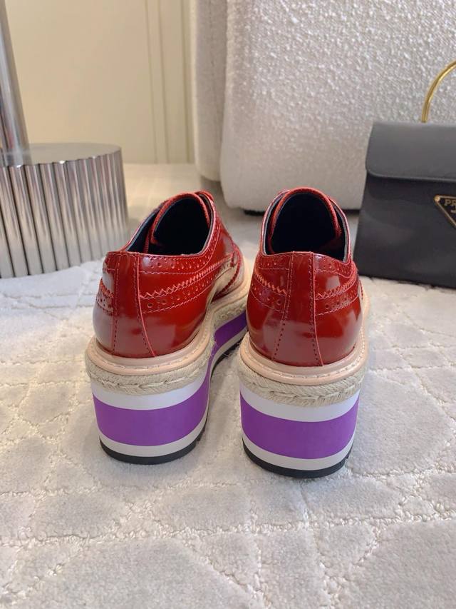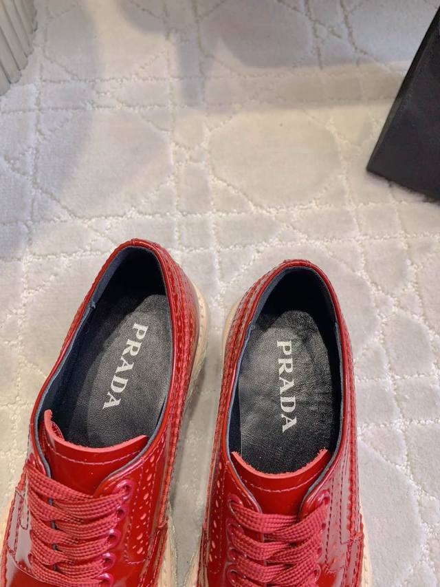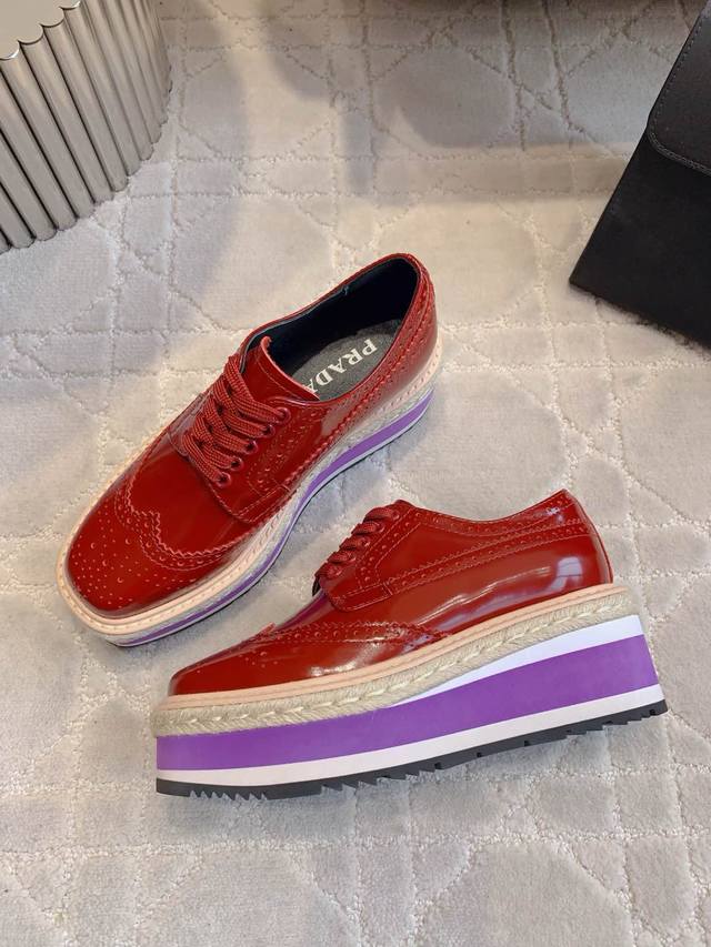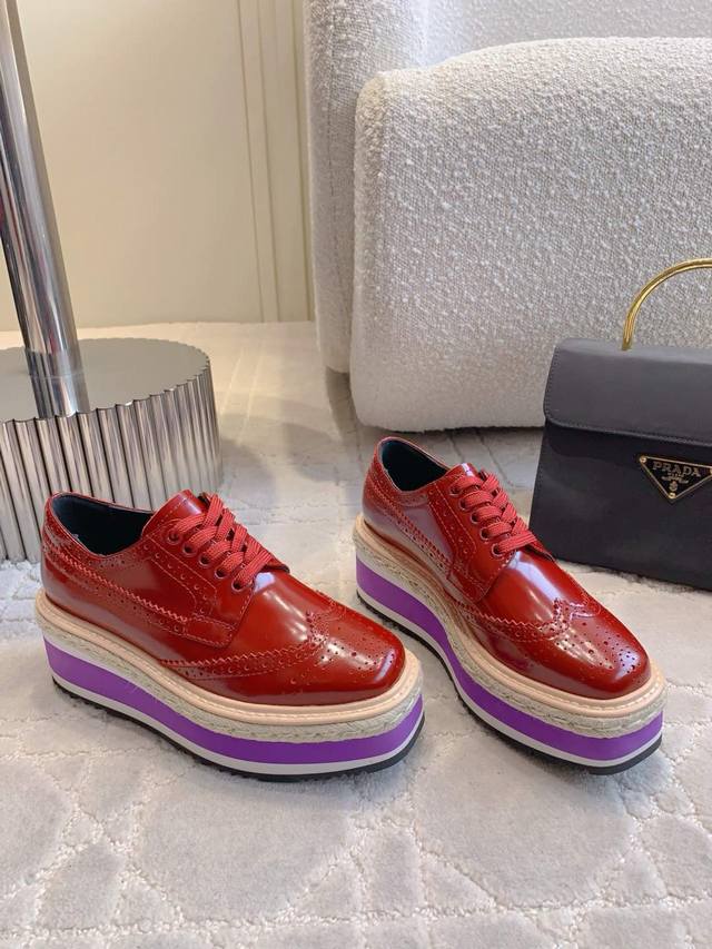 / 出厂价Prad*新款走秀厚底鞋松糕鞋 设计充满文艺气息 高级感满满 厚底设计拉长腿部线条 复古又时髦鞋面原版开边珠牛皮 内里垫脚牛皮 原版开模大底 尺码35-3