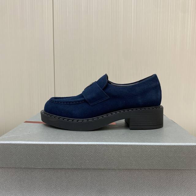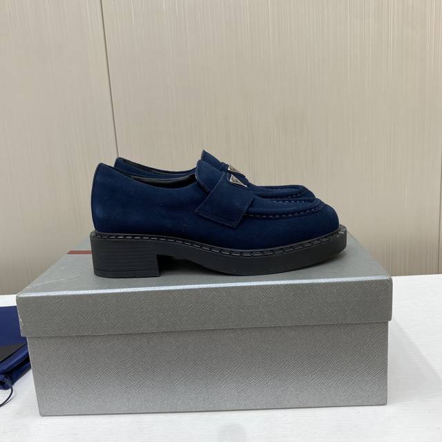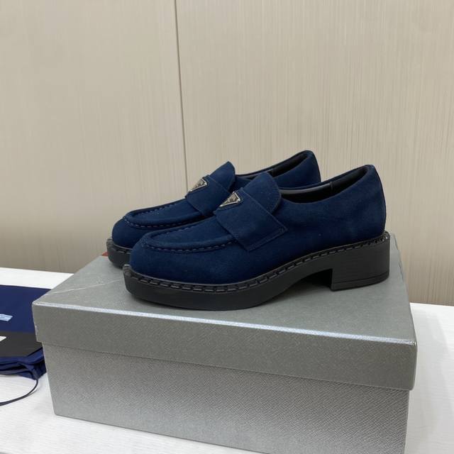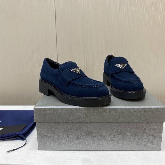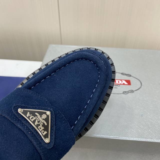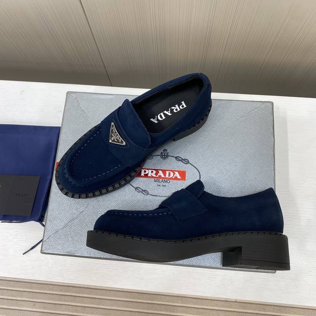 / 出厂价Prada 早春新款高品质情侣款乐福鞋,上脚舒适、超级百搭面料:A级进口高丝光牛反绒内里:柔软丝绸羊皮垫脚:丝稠牛皮垫脚码数:35-45配专柜包装出货