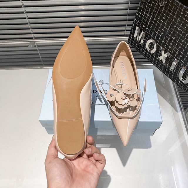 出厂: 普拉达新款漆皮小单鞋火热上新两个颜色选择、这里省略只拍两个、代理们自行脑补一直很火的牌子最近陆续上新、依旧是超前设计日常上班休闲必备、特殊的制作风格前所