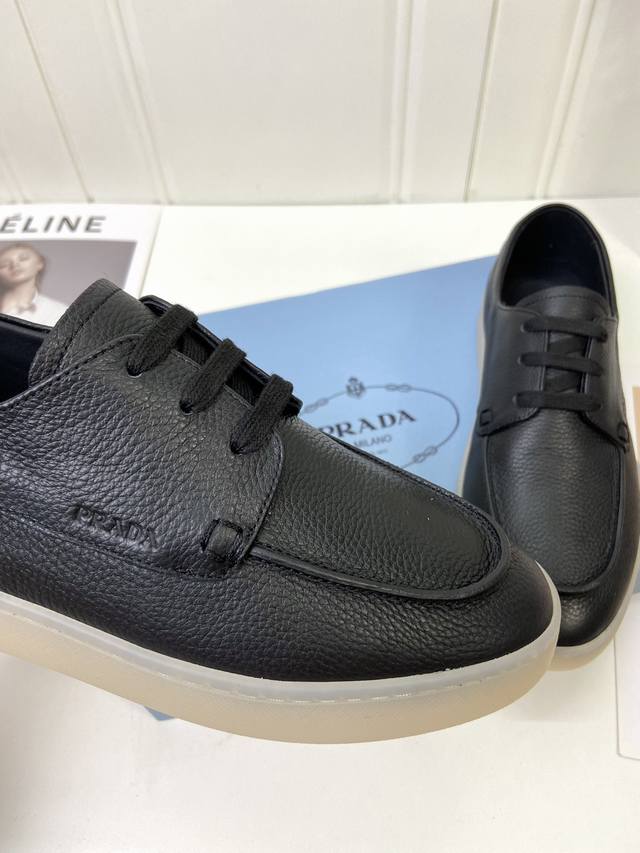 新款prada 普拉达 高版专柜同步上市, 新款男鞋、面料精选原版牛皮。原版牛皮内里垫脚!原版开模防滑pu大底,精美线条、简约大气,上脚感超级舒适上档次、休闲旅游。