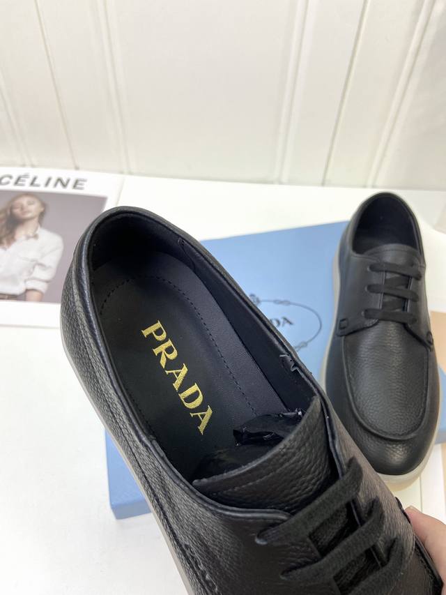 出厂 男20 情侣款 新款prada 普拉达 高版专柜同步上市, 新款男鞋、面料精选原版牛皮。原版牛皮内里垫脚!原版开模防滑pu大底,精美线条、简约大气,上脚感