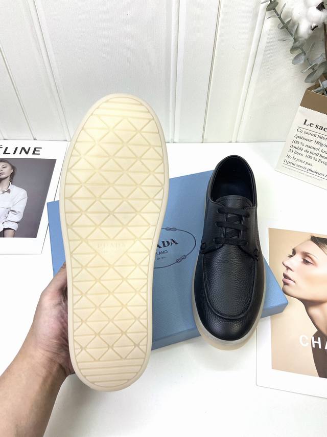 / 出厂 男20 情侣款 新款prada 普拉达 高版专柜同步上市, 新款男鞋、面料精选原版牛皮。原版牛皮内里垫脚!原版开模防滑pu大底,精美线条、简约大气,上脚感