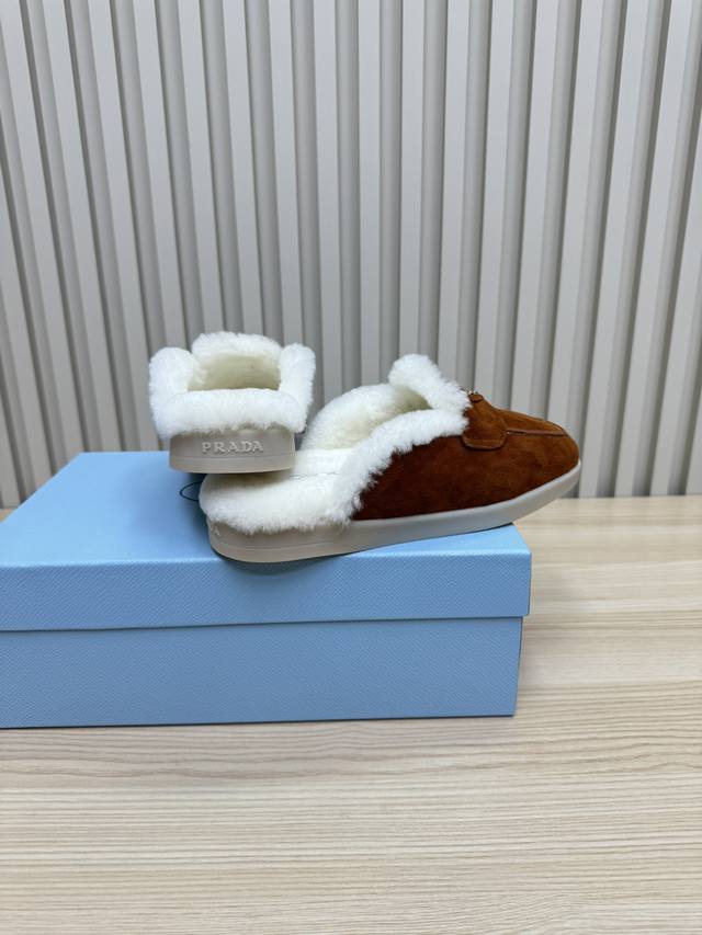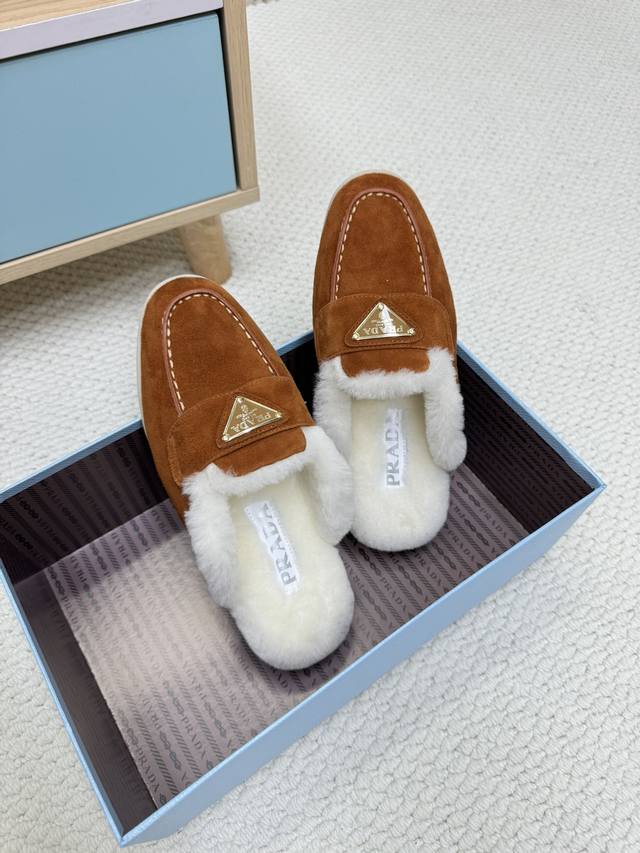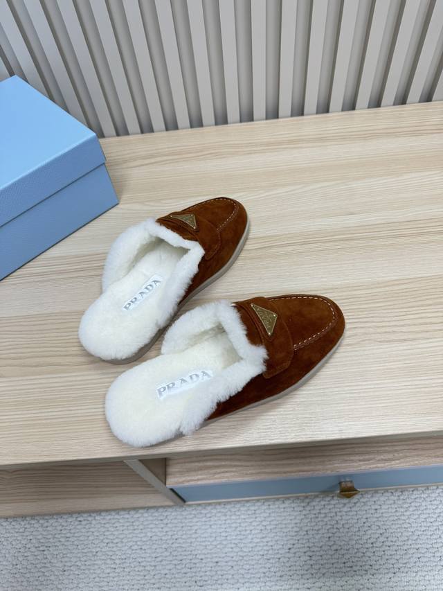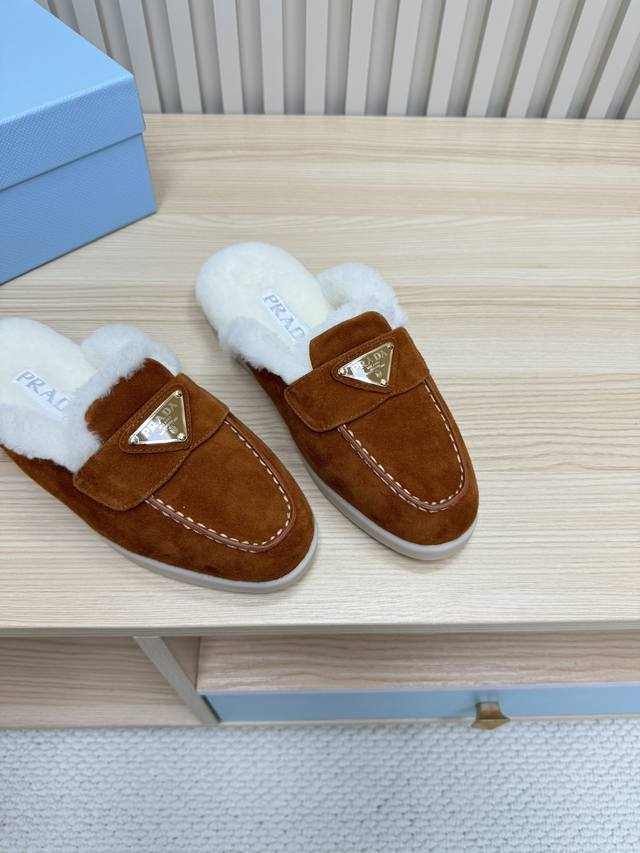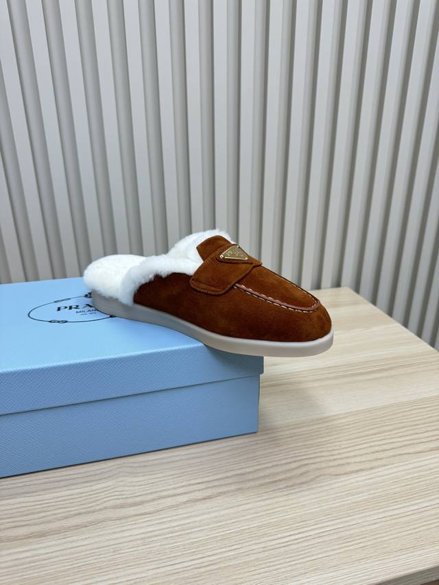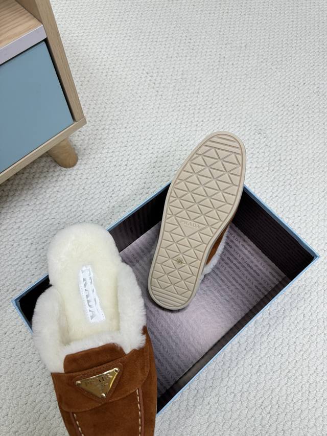 24秋冬新款羊毛里 半拖 羊毛领口上下呼应设计!勾勒出普拉达品牌Logo 凸显高端大气 !采用澳洲进口羊皮毛内里,冬季保暖效果超赞