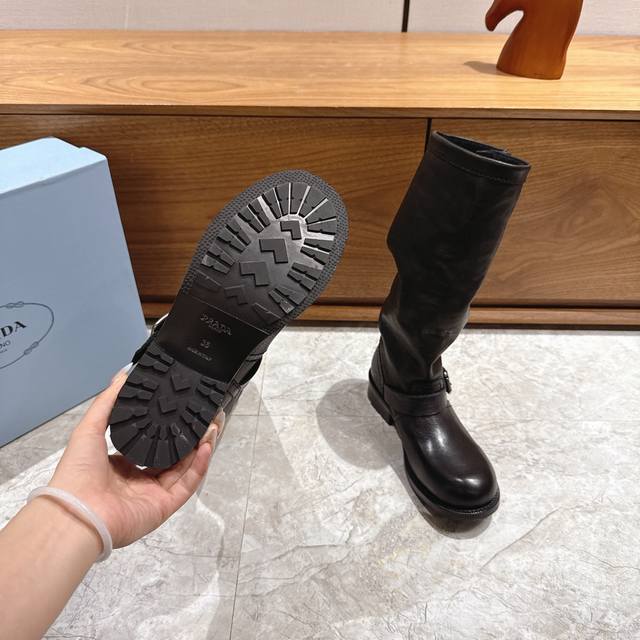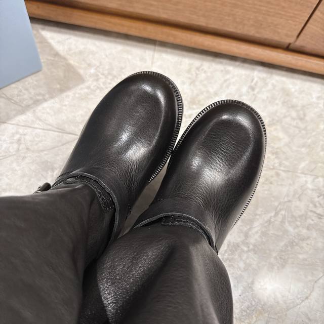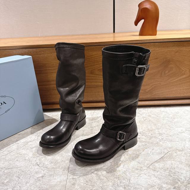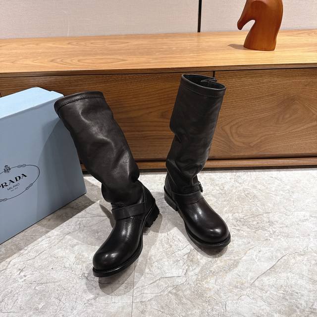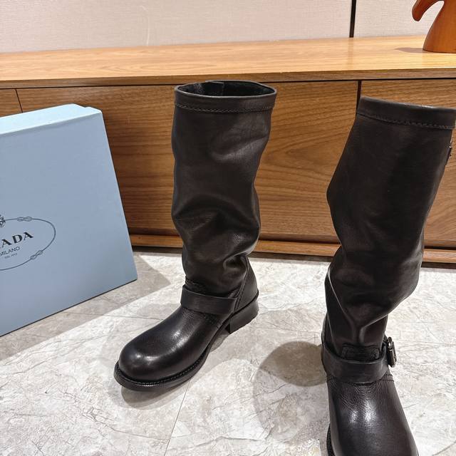 出厂 prad*普拉达2025秋冬爆款经典款切尔西皱皱靴骑士靴系列 这款上脚超好看.而且可以拉长腿型 此款卖点在于真皮住宿大底,我家拆烂Zp,原版1:1开模,大