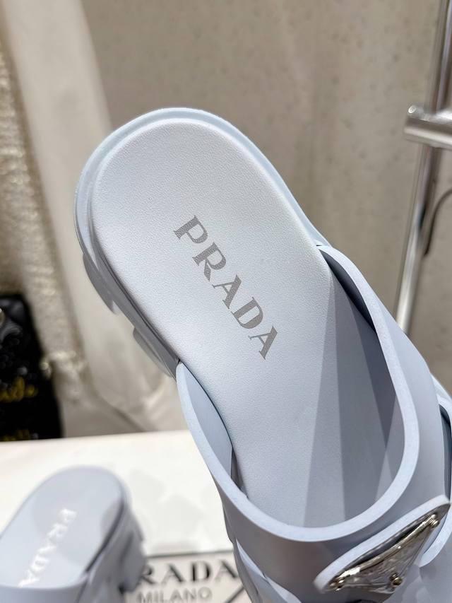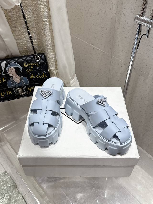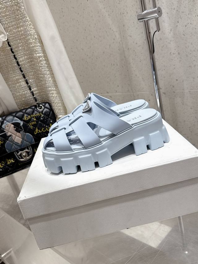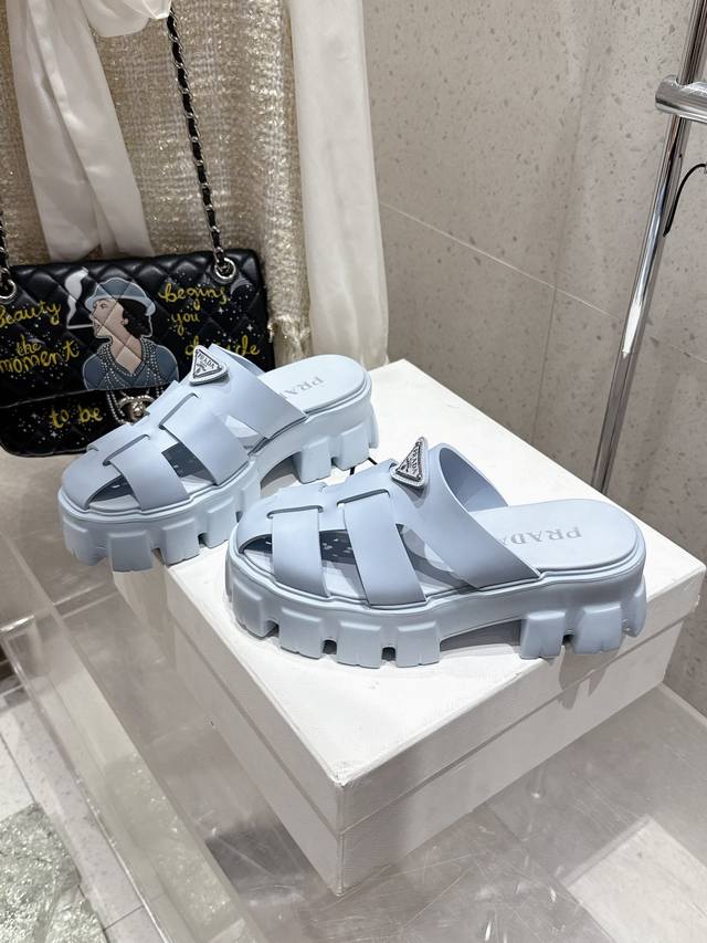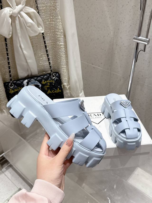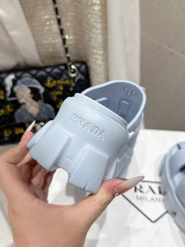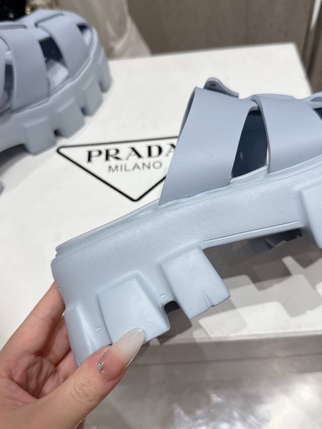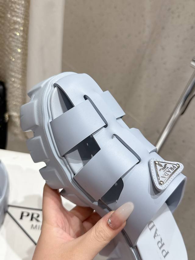 prada普拉达2024春夏新款锯齿罗马编织厚底橡胶凉鞋 复古时髦前卫的轮齿55Mm 厚底鞋底搭配橡胶鞋面,让整双鞋轻便舒适 鲜艳色彩 满足不同风格时髦人士的多种选择!