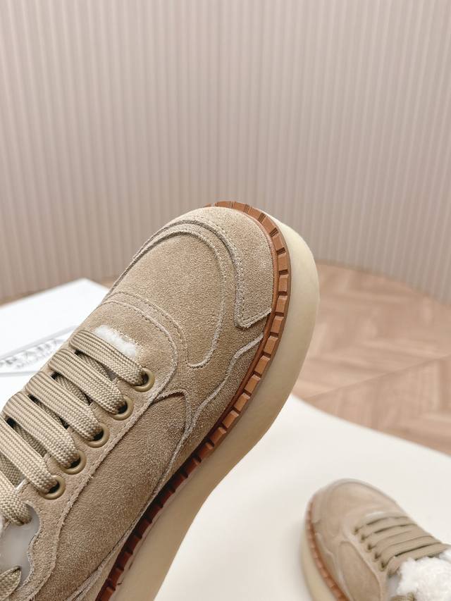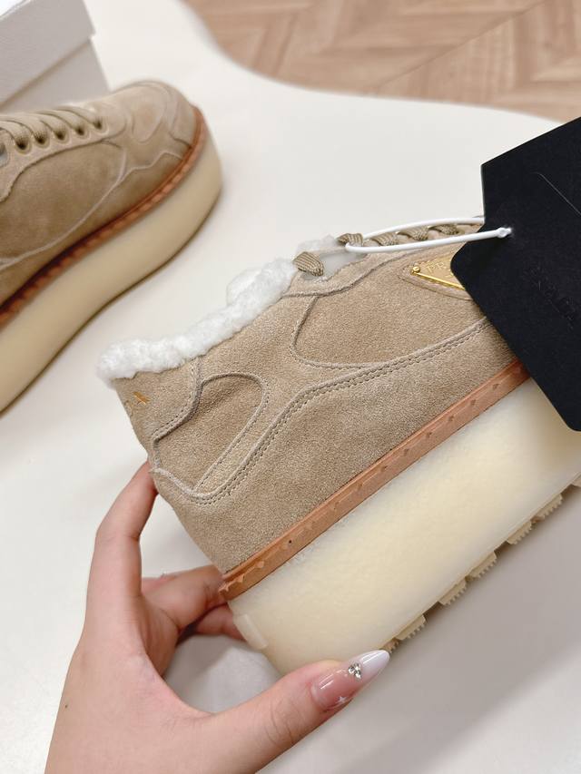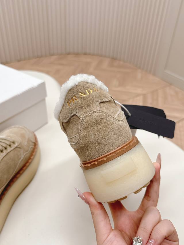 / 出 市面最高版本 Prada 普拉达24秋冬新款△三角标羊毛高帮鞋,厚底靴 雪地靴 双色擦色牛绒真羊羔毛 真皮沿条 双色tpu大底 材质细节可对比原版,市面普通