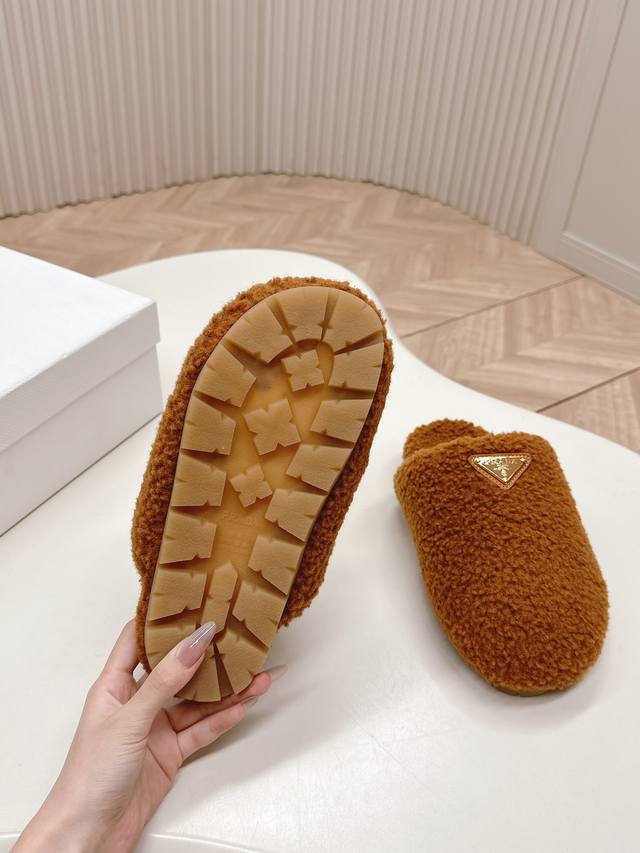 / 出 普拉达 Prada24秋冬毛毛拖鞋系列 半拖羊毛拖鞋 经典三角扣 舒适 萌萌哒 可爱 时尚 高雅 百搭 ,羊毛舒适柔软,唤醒秋冬暖意。让您从早到晚舒适踱步。