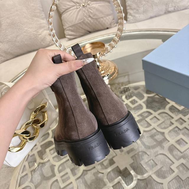 出 prada,普拉达新款,面料高丝光牛京,内里进口羊皮。上脚大气舒适,码数女35至41。