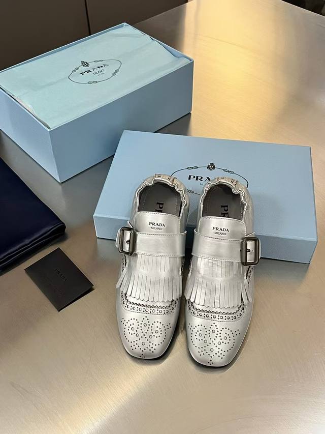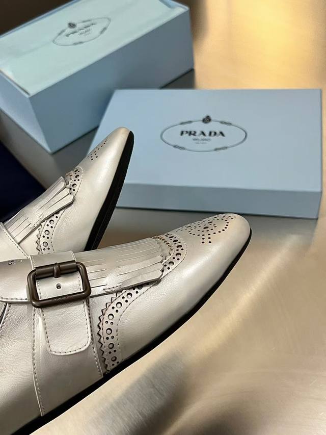 出P350 普拉达【Prada】2025春夏走秀款复古流苏乐福鞋 时髦精的狂爱,走秀款