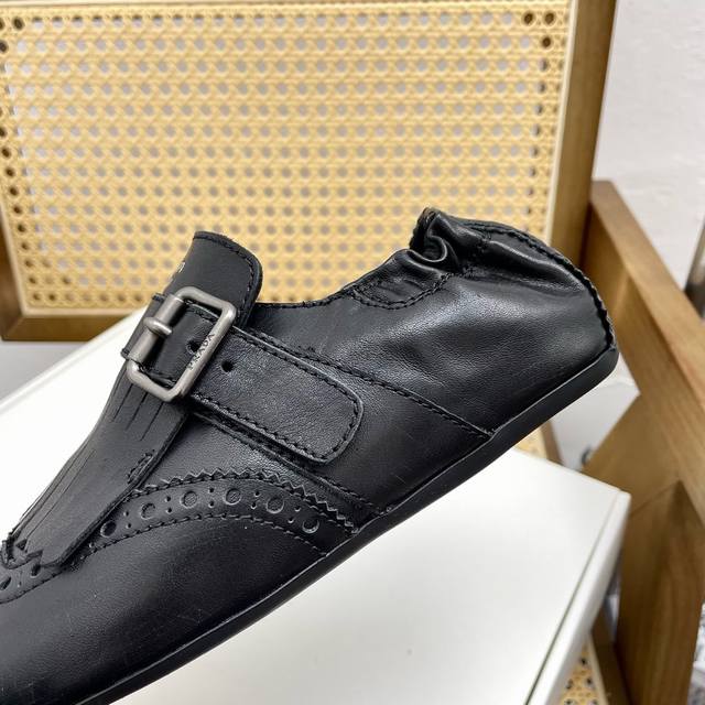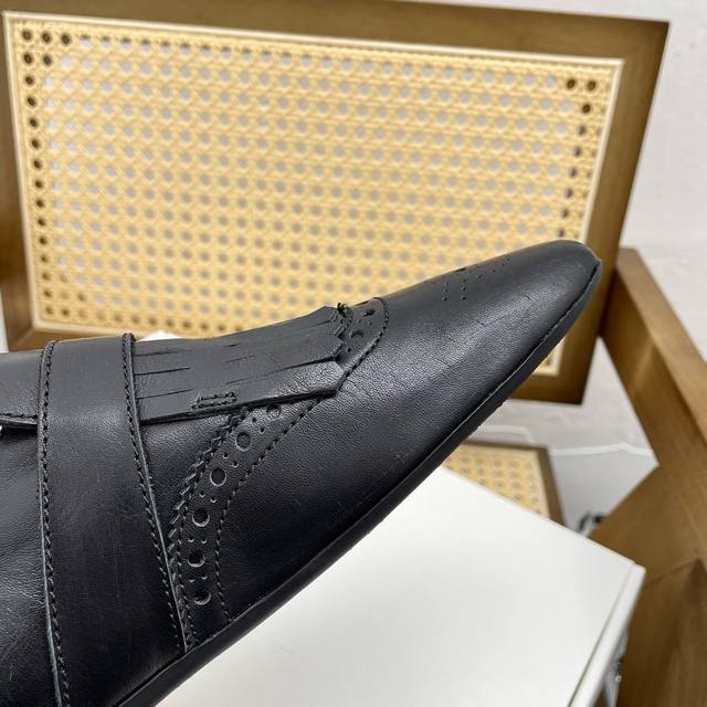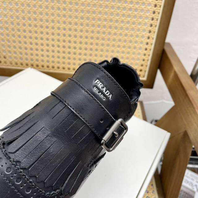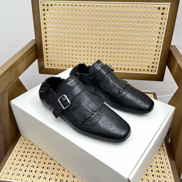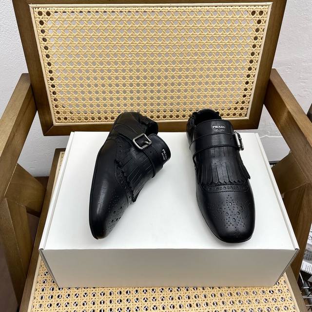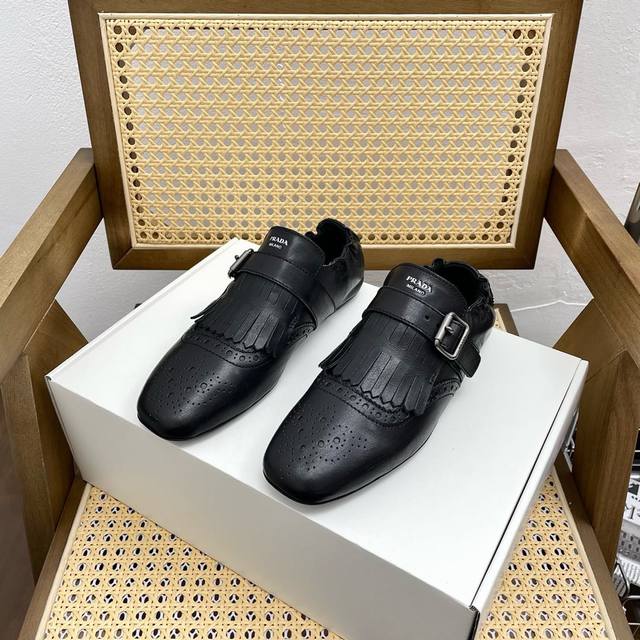 半拖 单鞋 顶级版本代购级prad* 25Ss 普拉达走秀款复古流苏半拖鞋单鞋