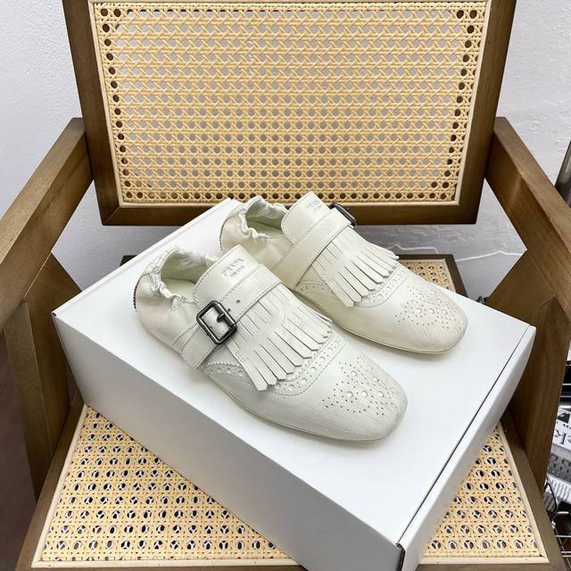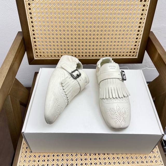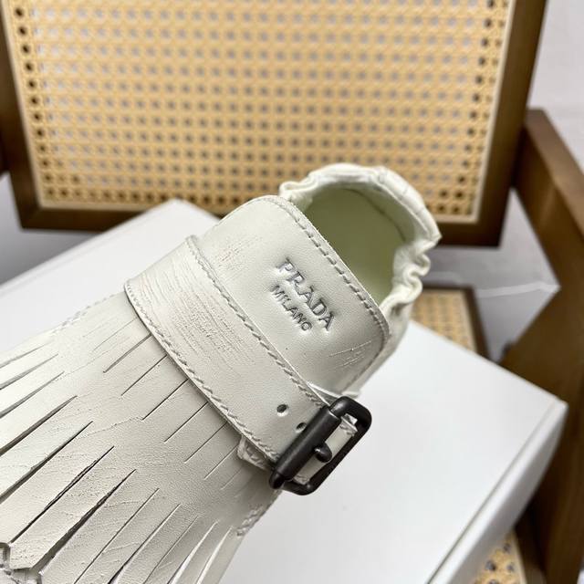 半拖 单鞋 顶级版本代购级prad* 25Ss 普拉达走秀款复古流苏半拖鞋单鞋