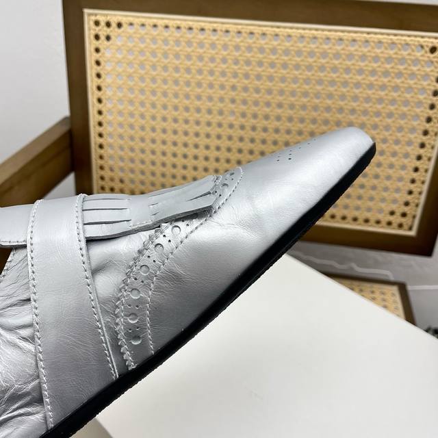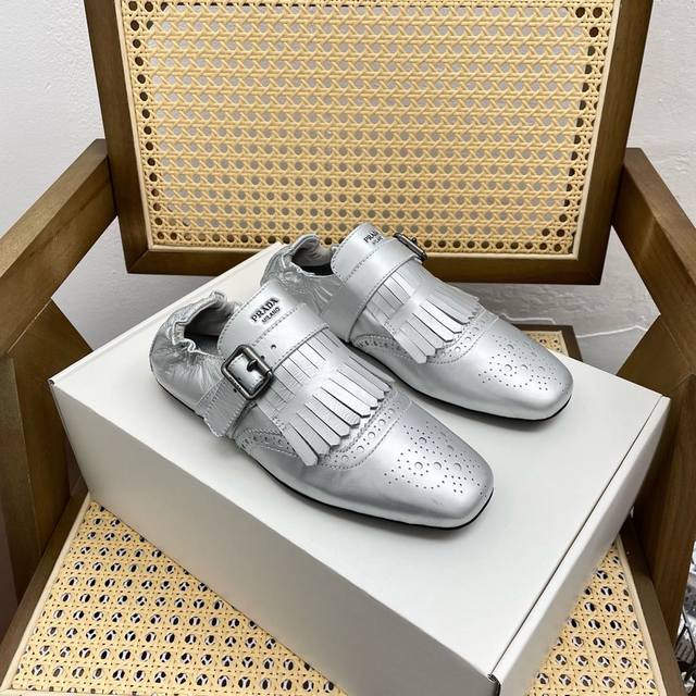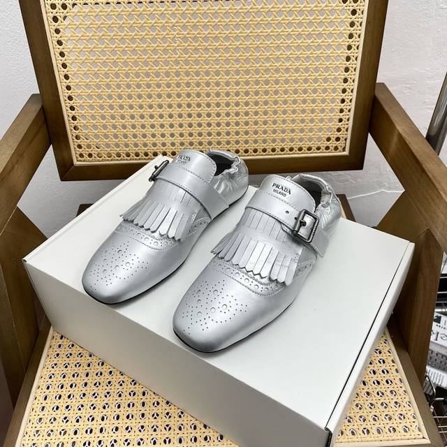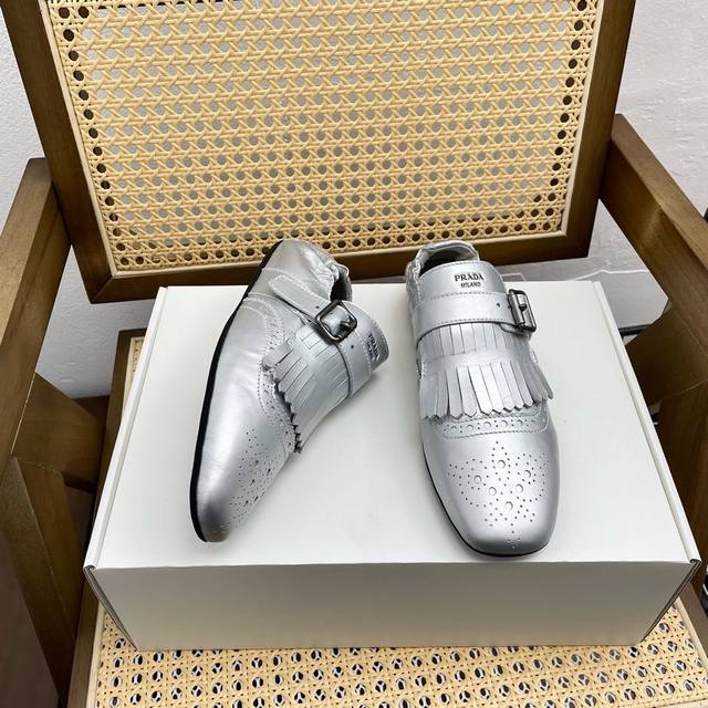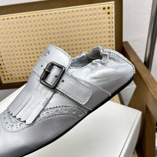 半拖 单鞋 顶级版本代购级prad* 25Ss 普拉达走秀款复古流苏半拖鞋单鞋