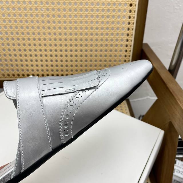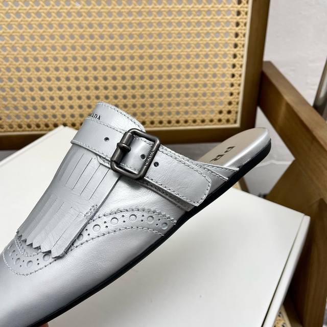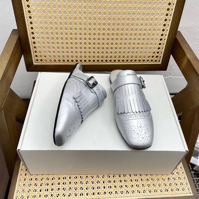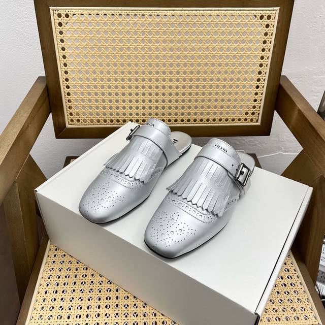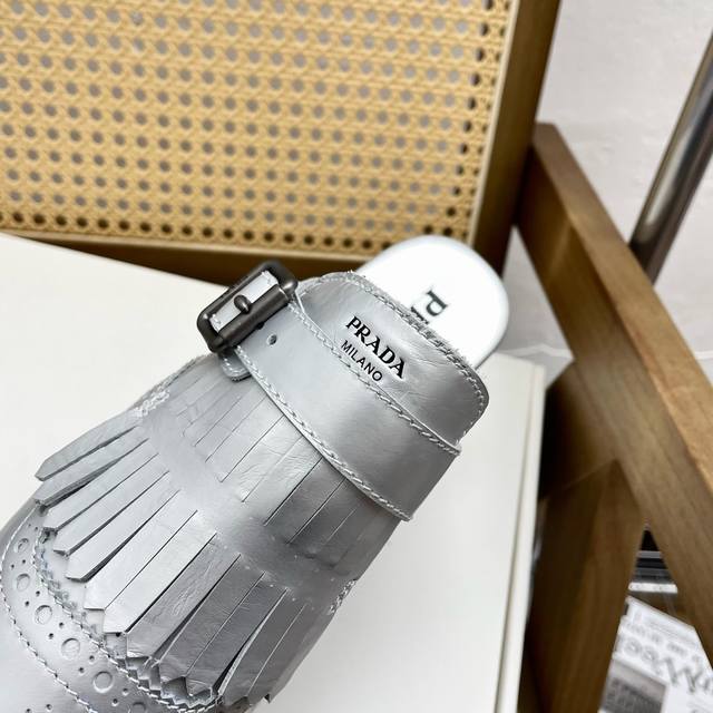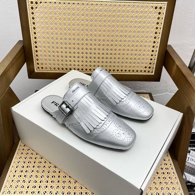 半拖 单鞋 顶级版本代购级prad* 25Ss 普拉达走秀款复古流苏半拖鞋单鞋
