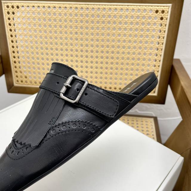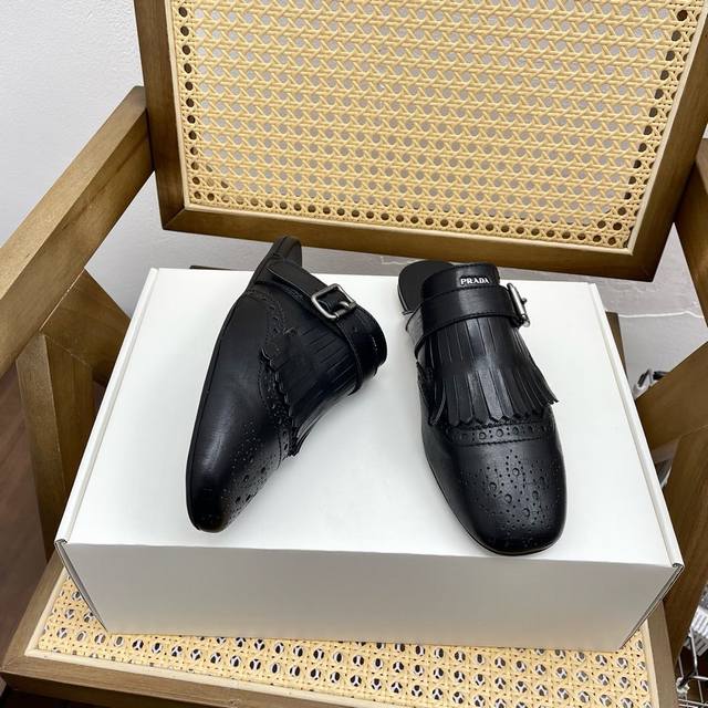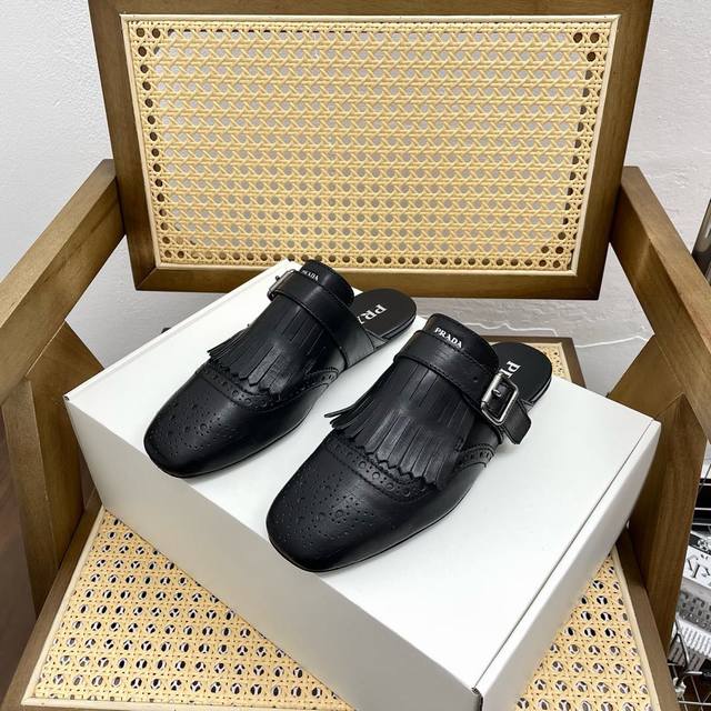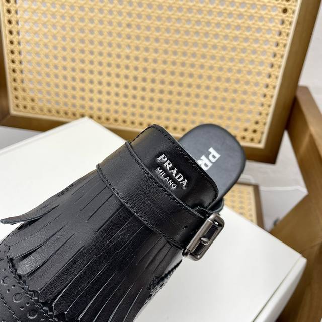 半拖 单鞋 顶级版本代购级prad* 25Ss 普拉达走秀款复古流苏半拖鞋单鞋