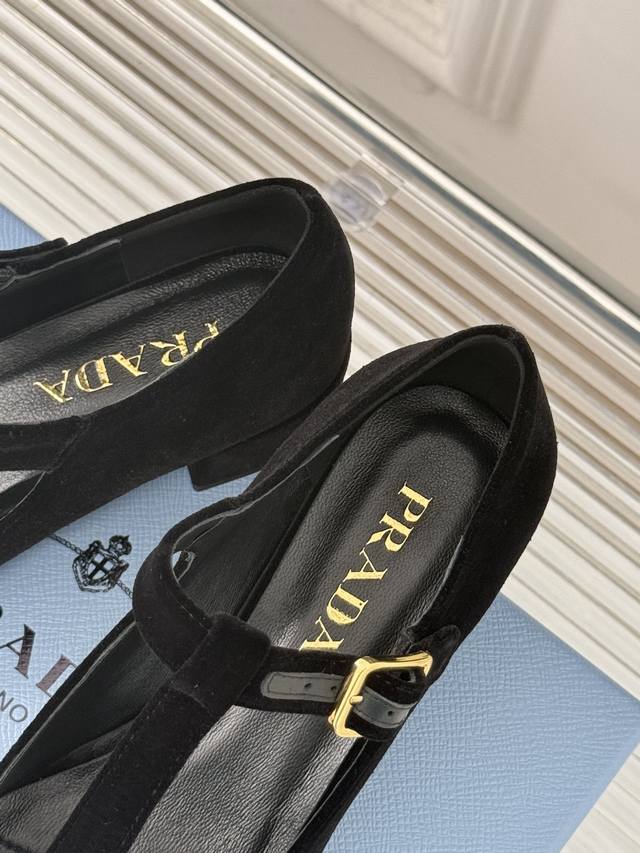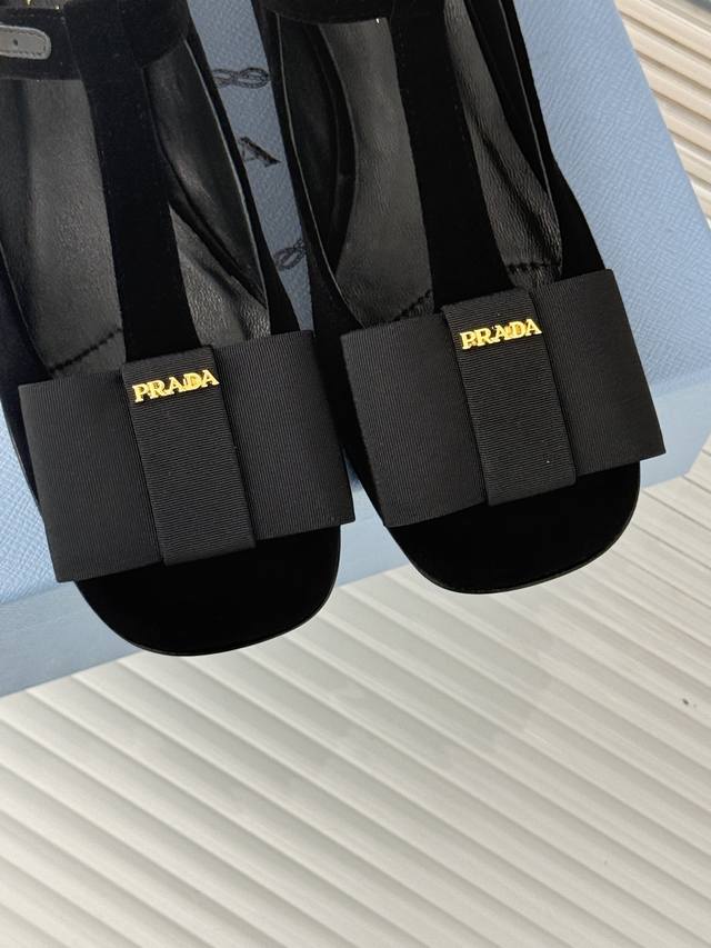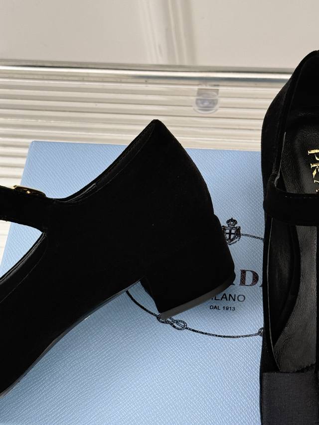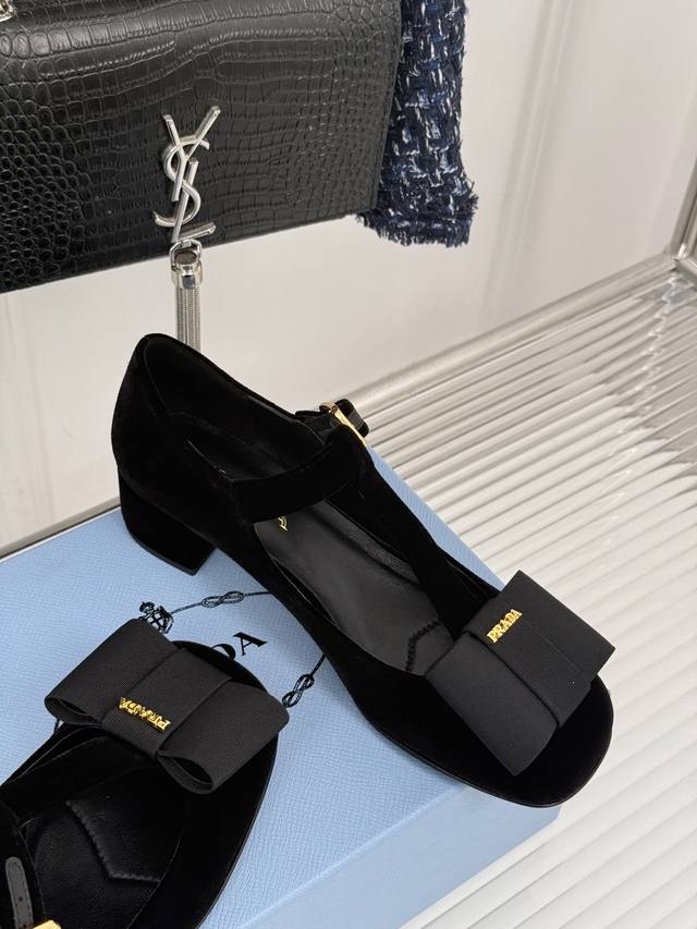 Prada 普拉达经典t字带蝴蝶结圆头玛丽珍单鞋