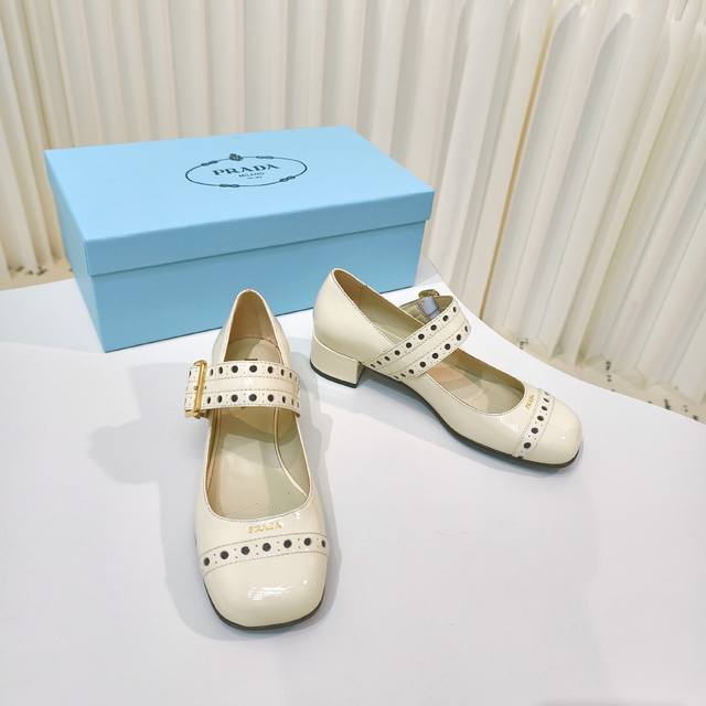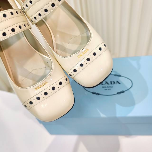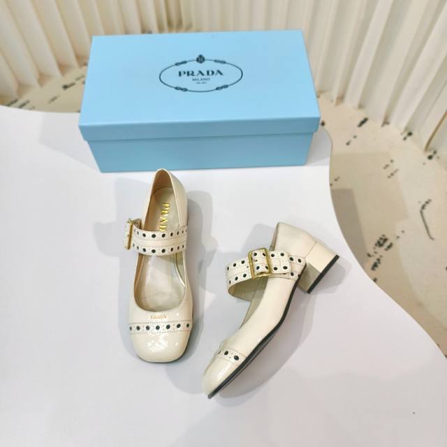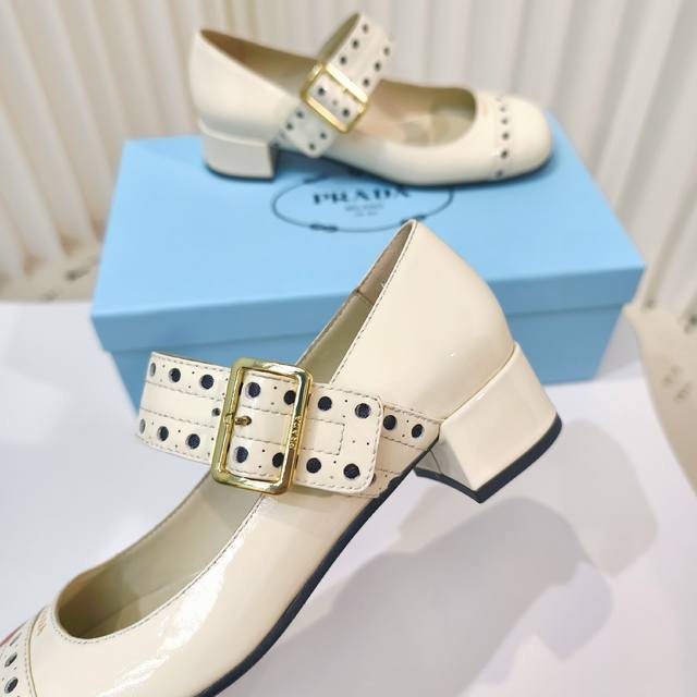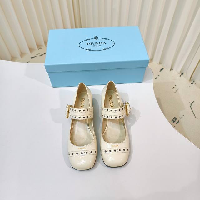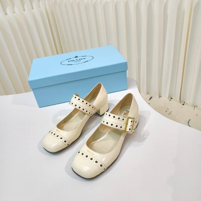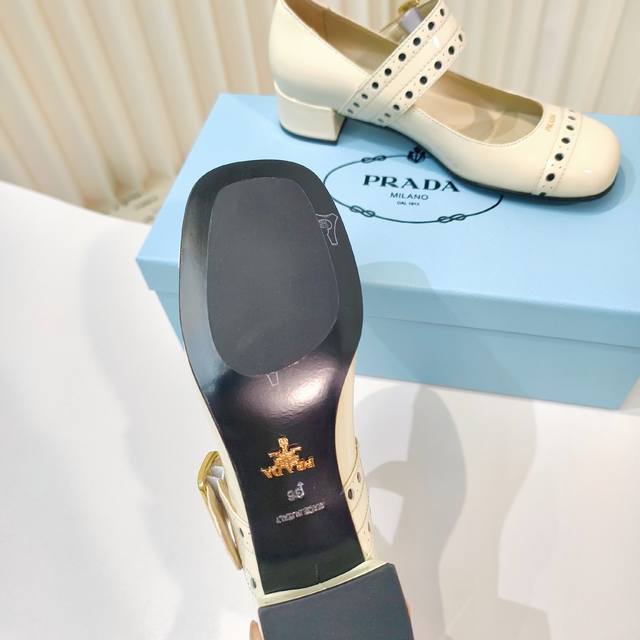 原版开发代购级 普拉达25Ss新款prada漆皮玛丽珍粗跟单鞋