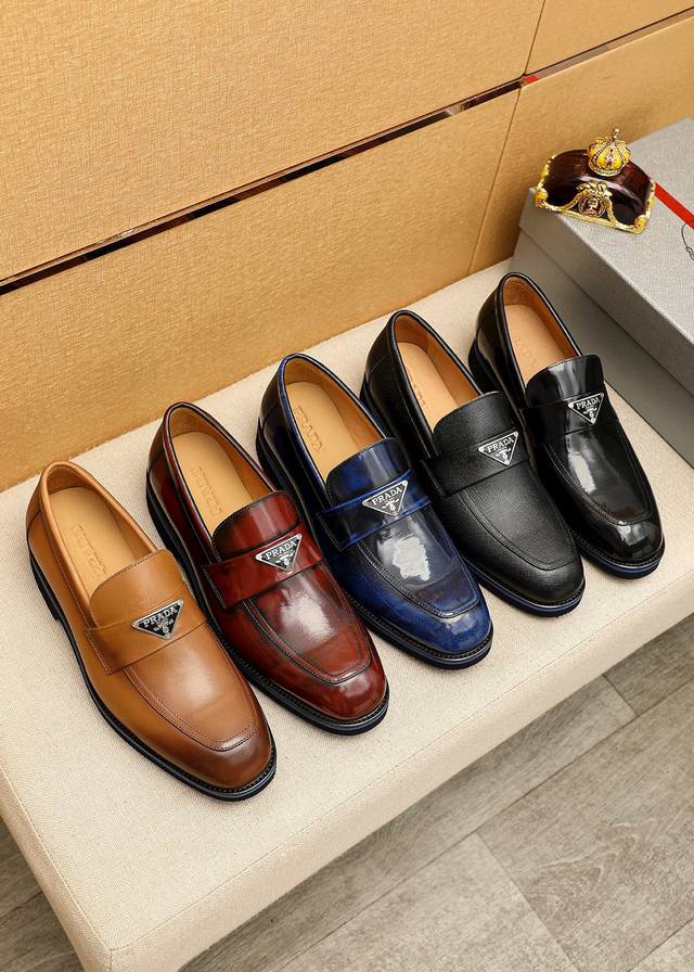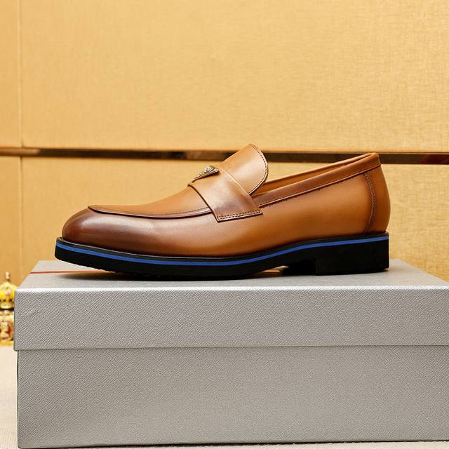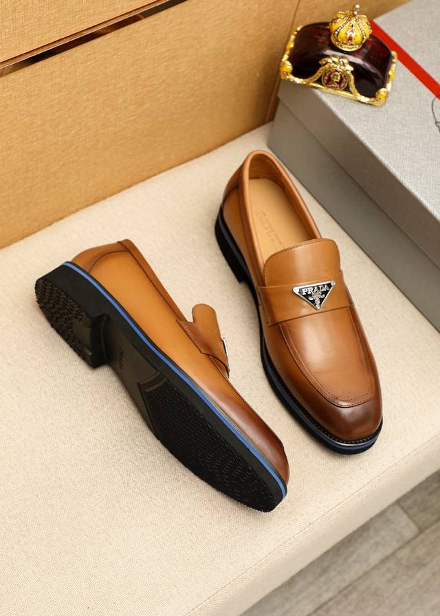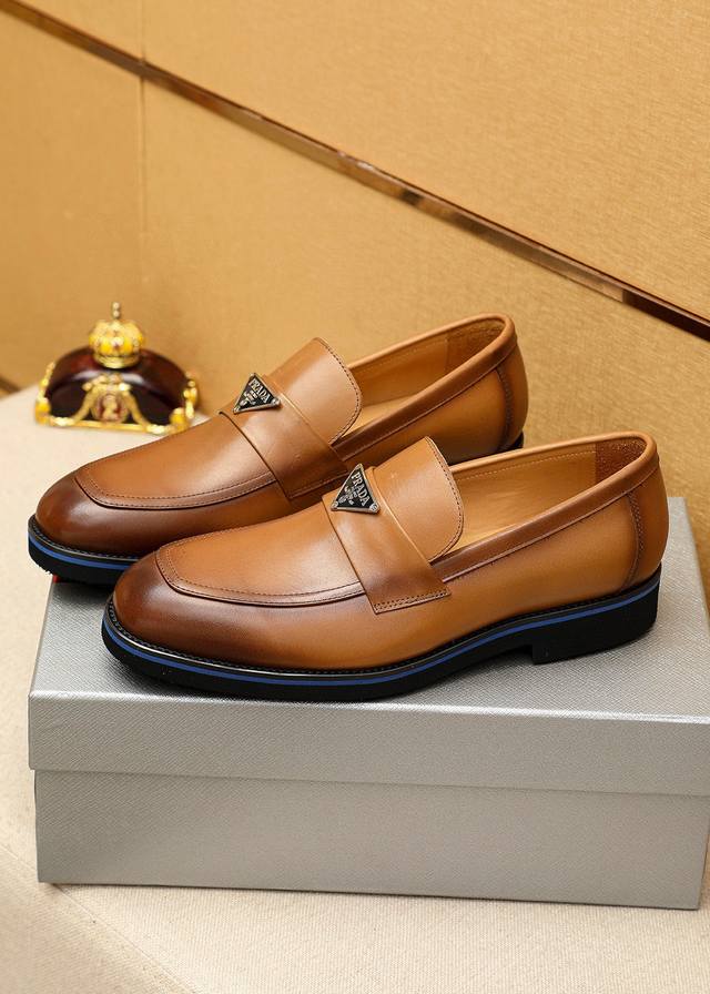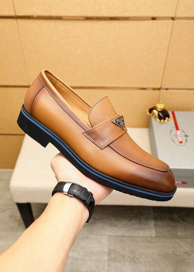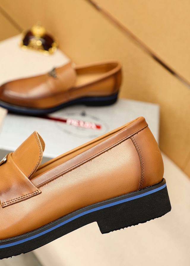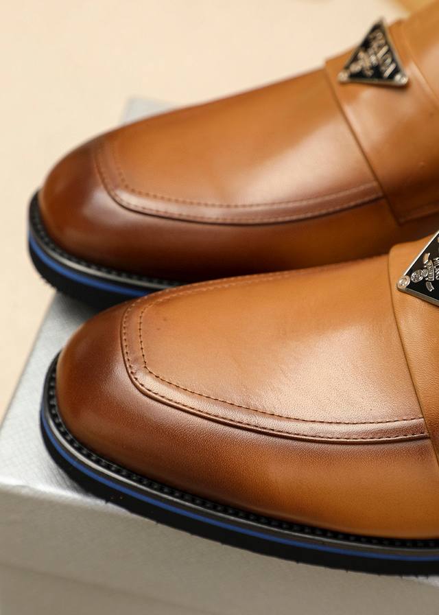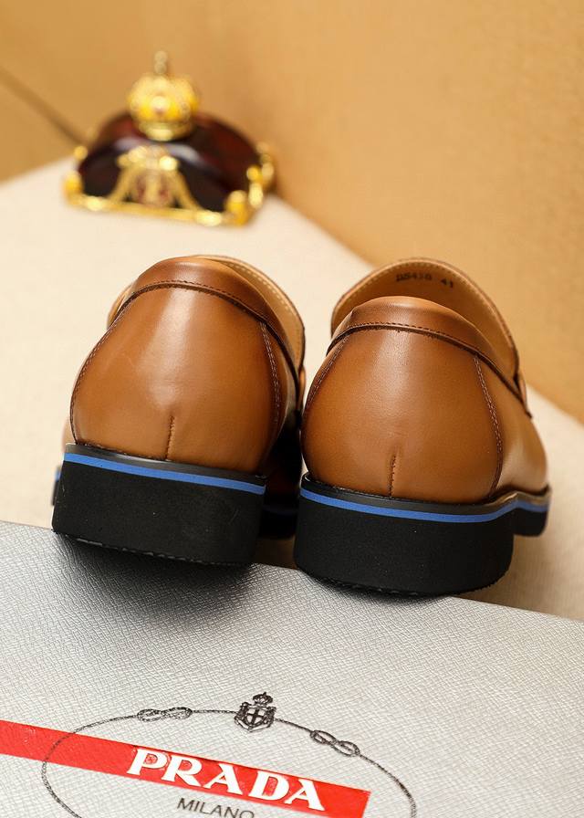 / 商品商标:prada 普拉达 休闲皮鞋 正码码数: 39-44 38.45.46.47订制 商品材料:精选 进口头层小牛皮鞋面+奢华五金扣,进口水染牛皮内里。强
