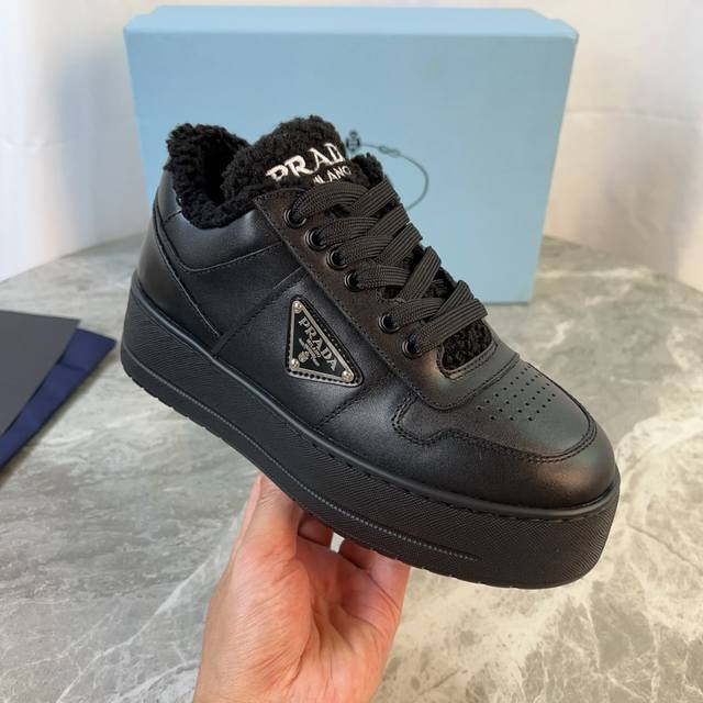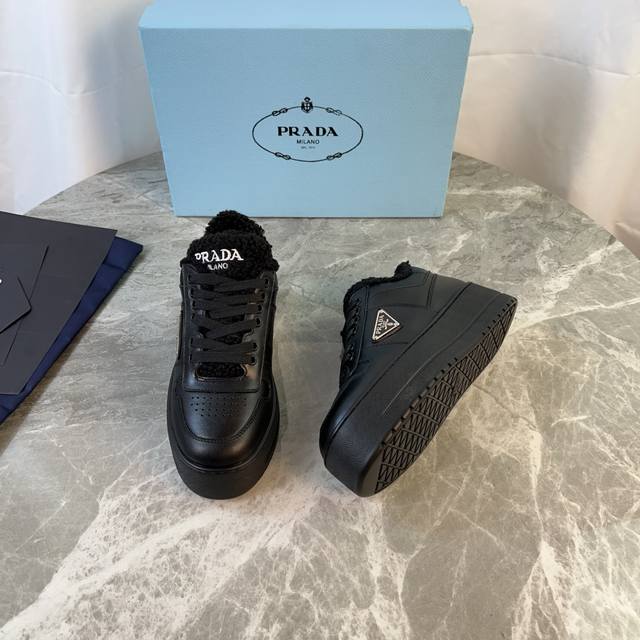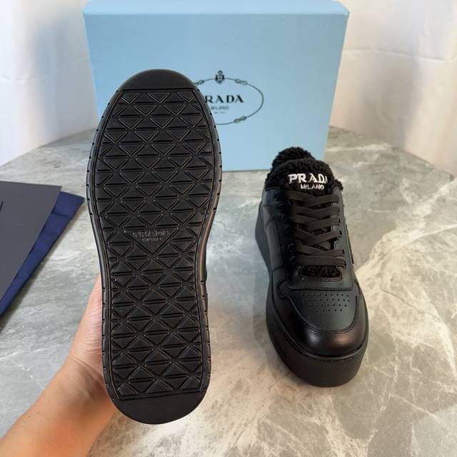 家最新款 面:进口粒面头层牛皮、高丝光牛反绒 里:原版进口全真羊毛 垫:全真羊毛 底:超轻发泡工艺大底 厚4.5Cm 标志性三角标,原版包装 Size :35-