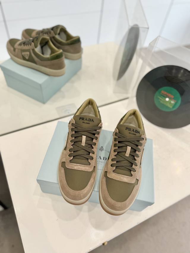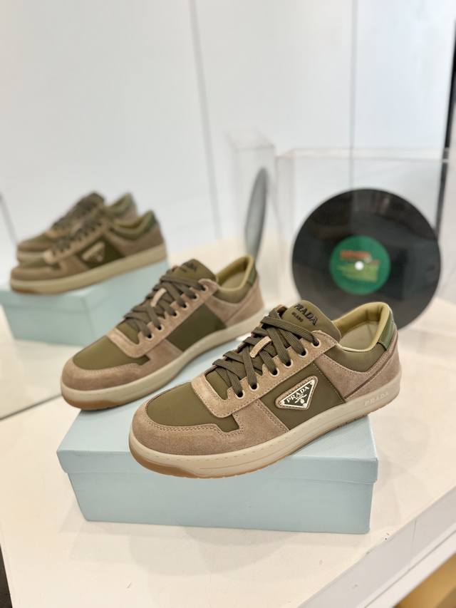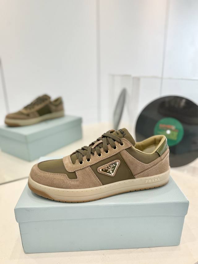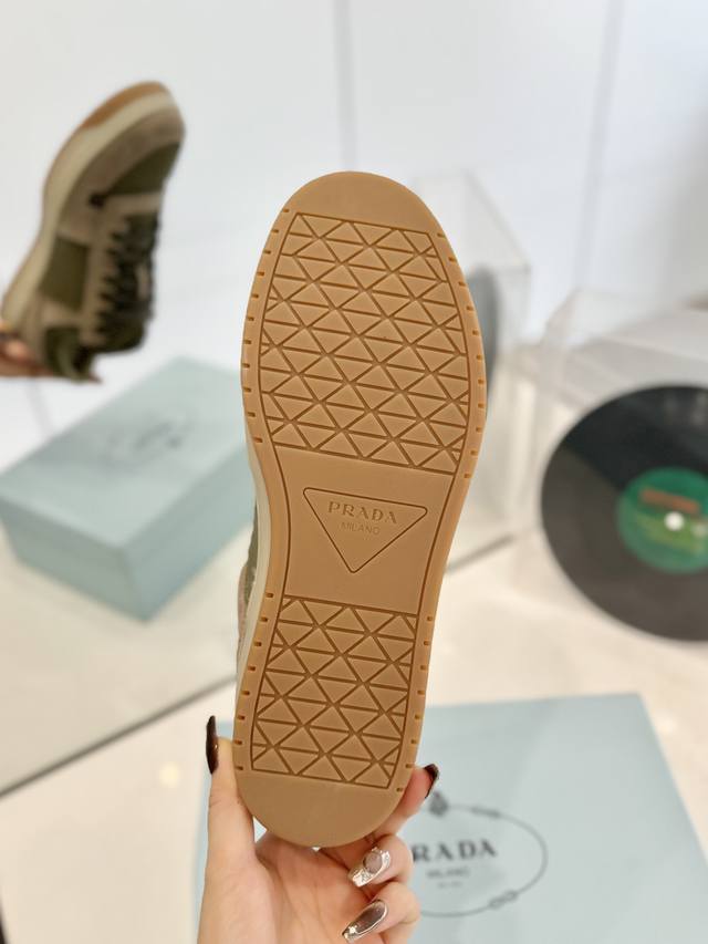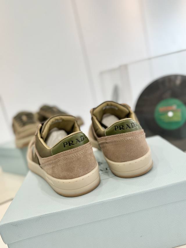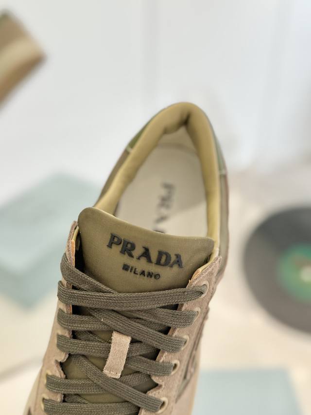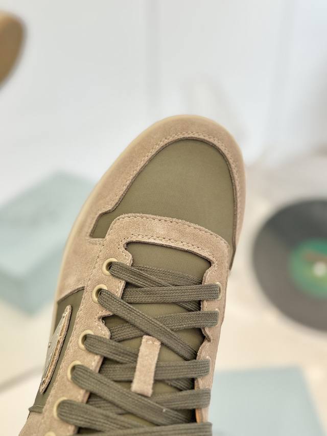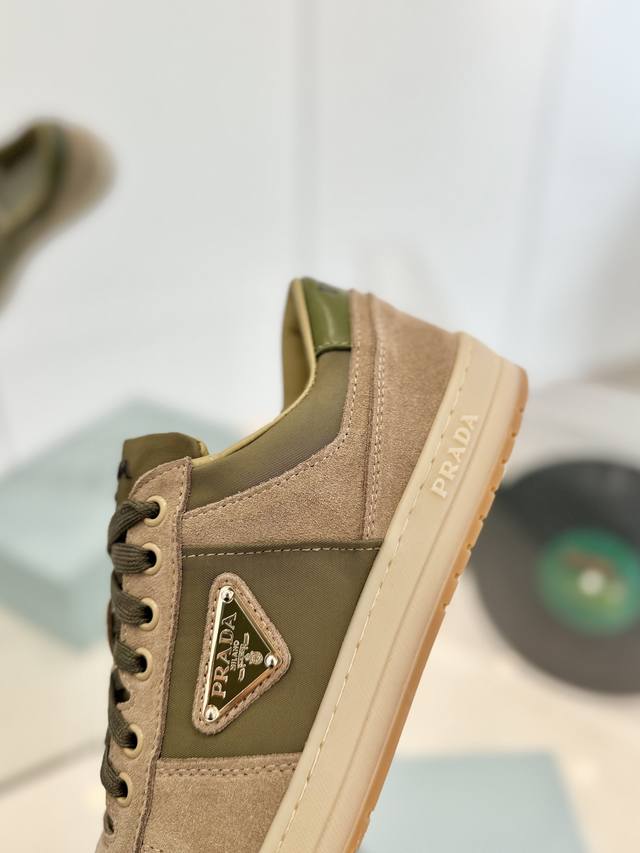 / 工厂p价 普拉达prada 高版本运动鞋采用富有当代魅力的运动风设计,线条简洁,搭配轻盈的鞋底。通过不同角度演绎prada徽标,饰有标志性的涂珐琅金属三角形,彰