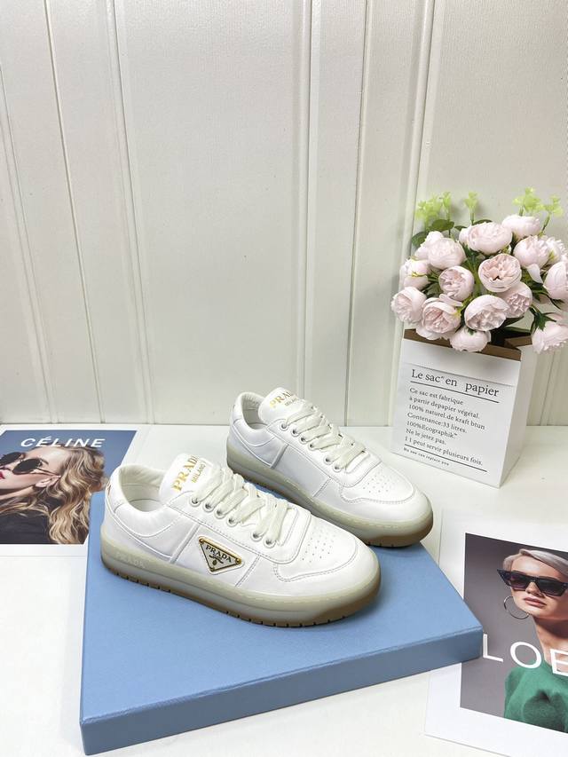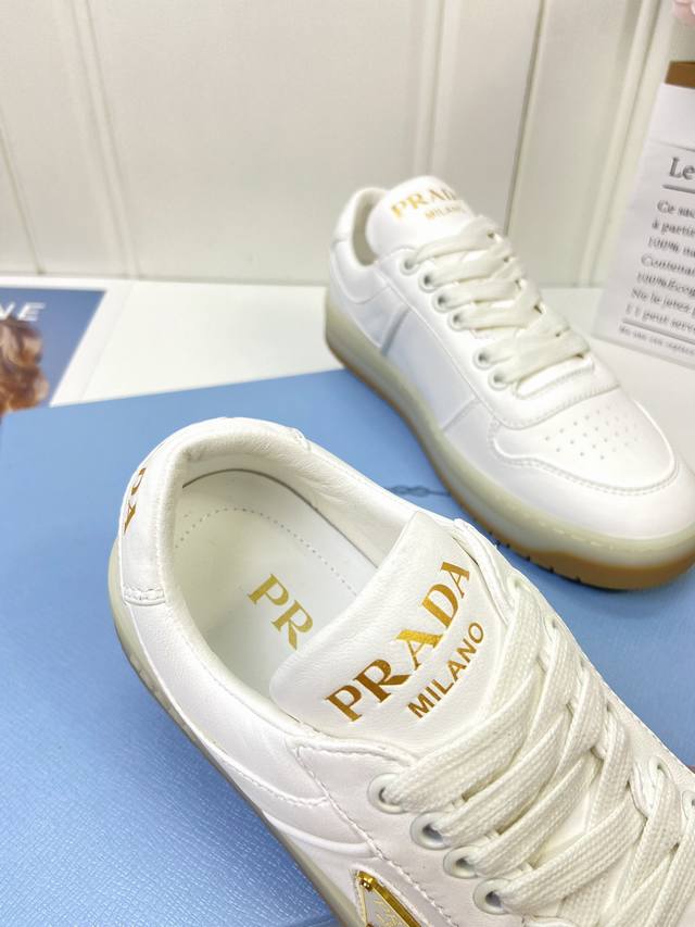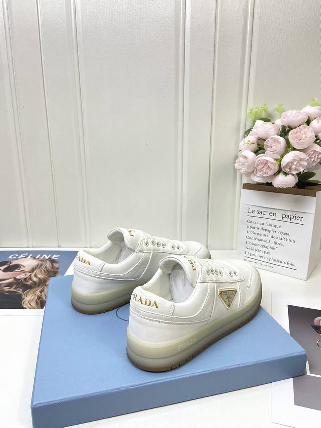prada*最新气垫底 运动休闲板鞋 ,再次升级版!一发售一直畅销 今年升级版做工各方面都成熟漂亮! 原版1:1复制,标志性的三角标扣,prad*能在要重场合上得用了上,小清新风带点气贵的感觉,上脚非常完美,保暖的同时也不失美感!鞋头设计为方形半圆弧度更显得大方得体,脚感特别舒服,特别的柔软普拉达,套楦工艺,油边工艺。