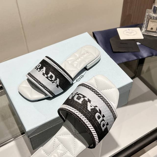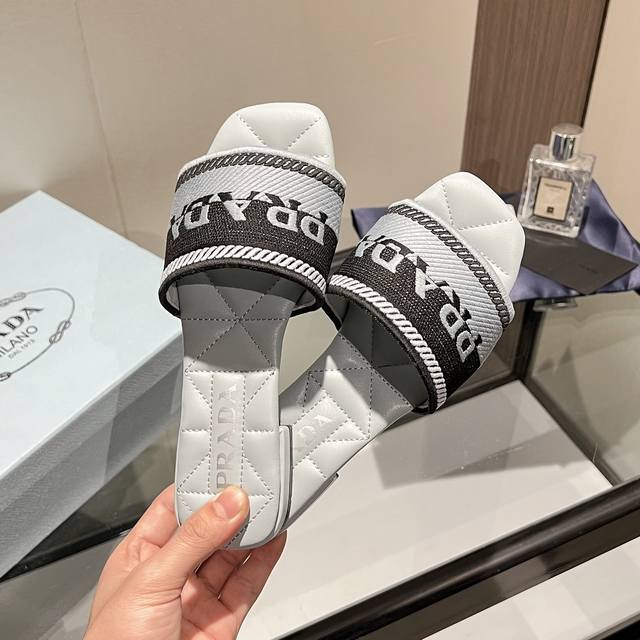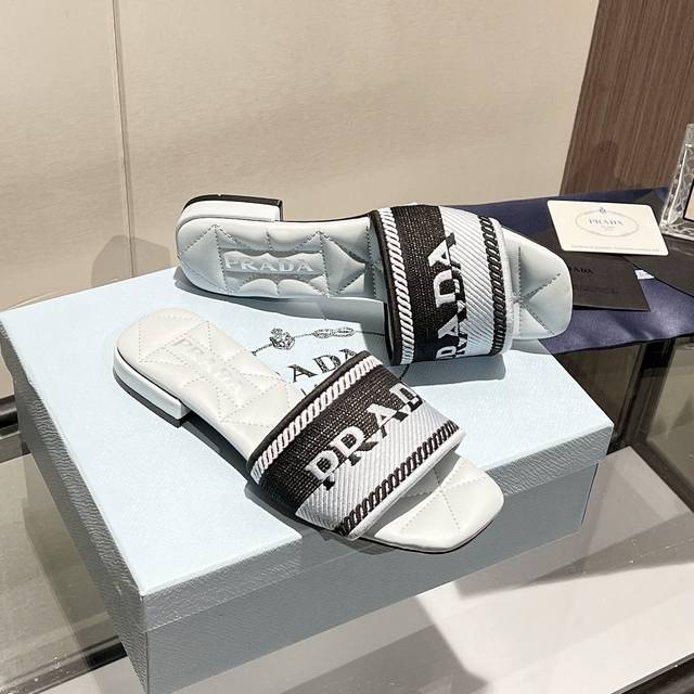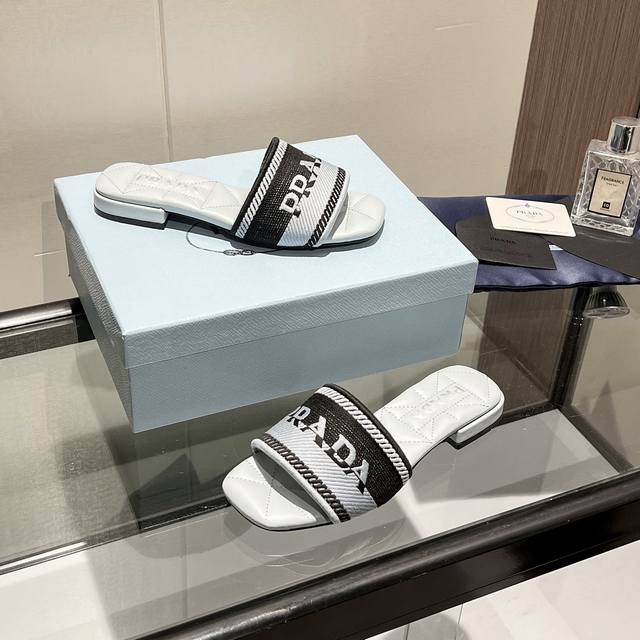 2024新款prada 普拉达经典三角标 粗跟半拖系列 简约极致 三角标点缀...